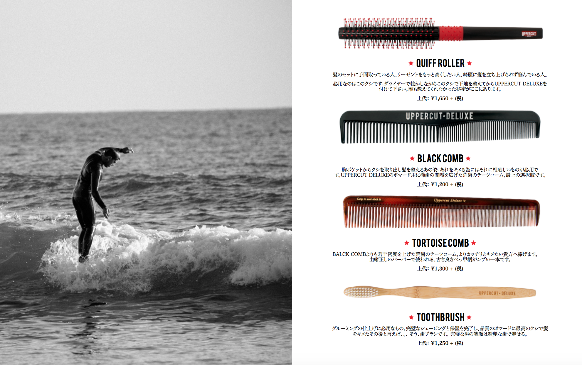 サーフィンを題材とした映画「上島ジェーン」に出演したり、Safariのアスリート・ドレッサー・アワード2015に選ばれたりと、その活躍はすでにプロサーファーという枠を超越しているそんな彼が、セット力、ホールド力共に抜群な1950年代スタイルの理髪店がプロデュースする”UPPERCUT Deluxe”とインフルエンサーとして正式に契約を交わした。