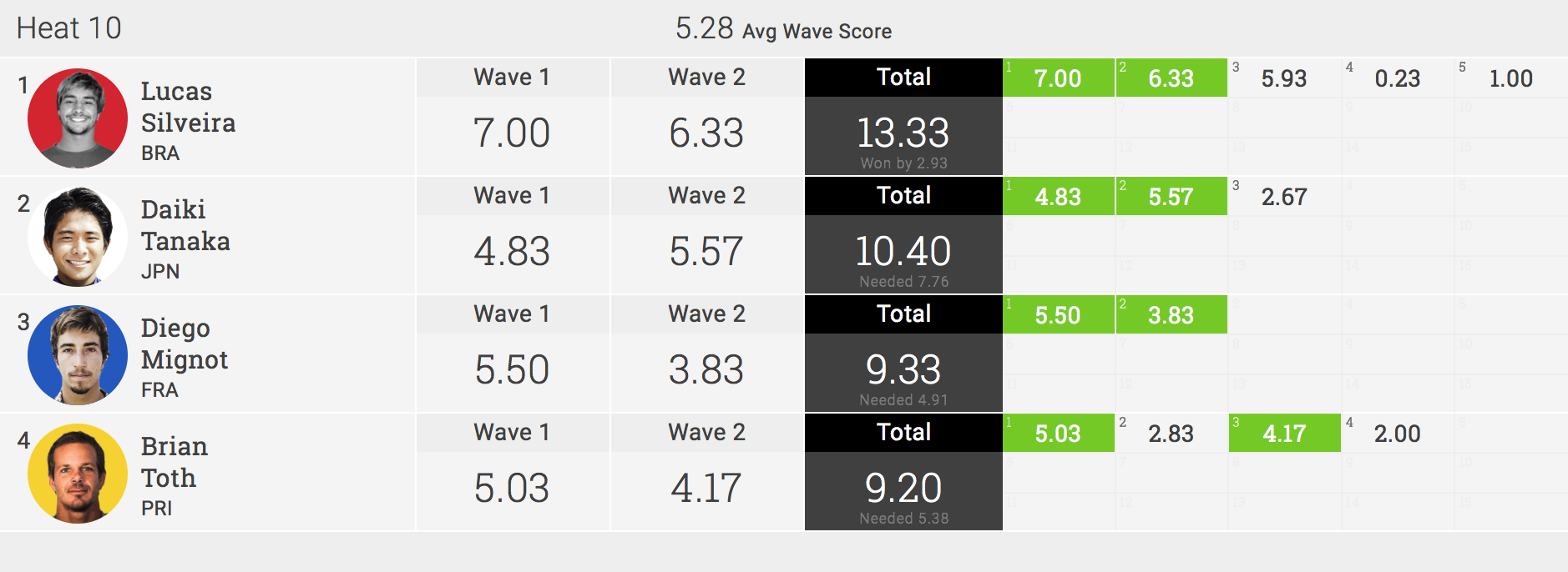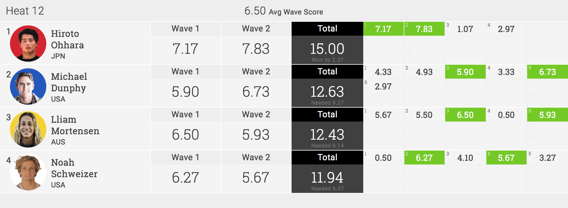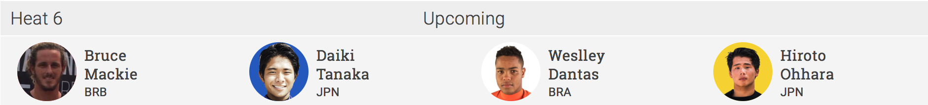 ヒート6では大原洋人と田中大貴が同じヒートに組み込まれ、Bruce Mackie(BRB)、Weslley Dantas(BRA)と対戦予定となっている。