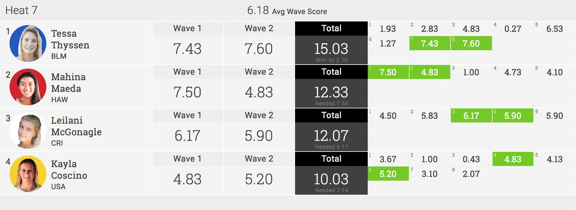 さらに同時開催中のWOMENS QS3000ではハワイ育ちの前田マヒナがラウンド4へ進出!