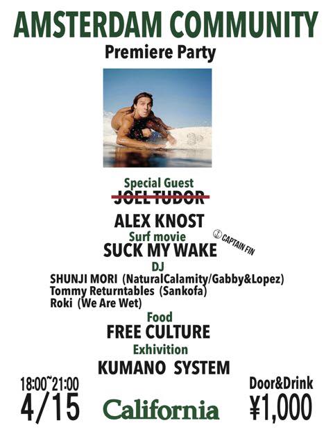 当日、 CaliforniaではAMSTERDAM COMMUNITYによるイベントが行われており、会場ではCaptain Finによる幻のオリジナルムービー”Suck My Wake”も上映。