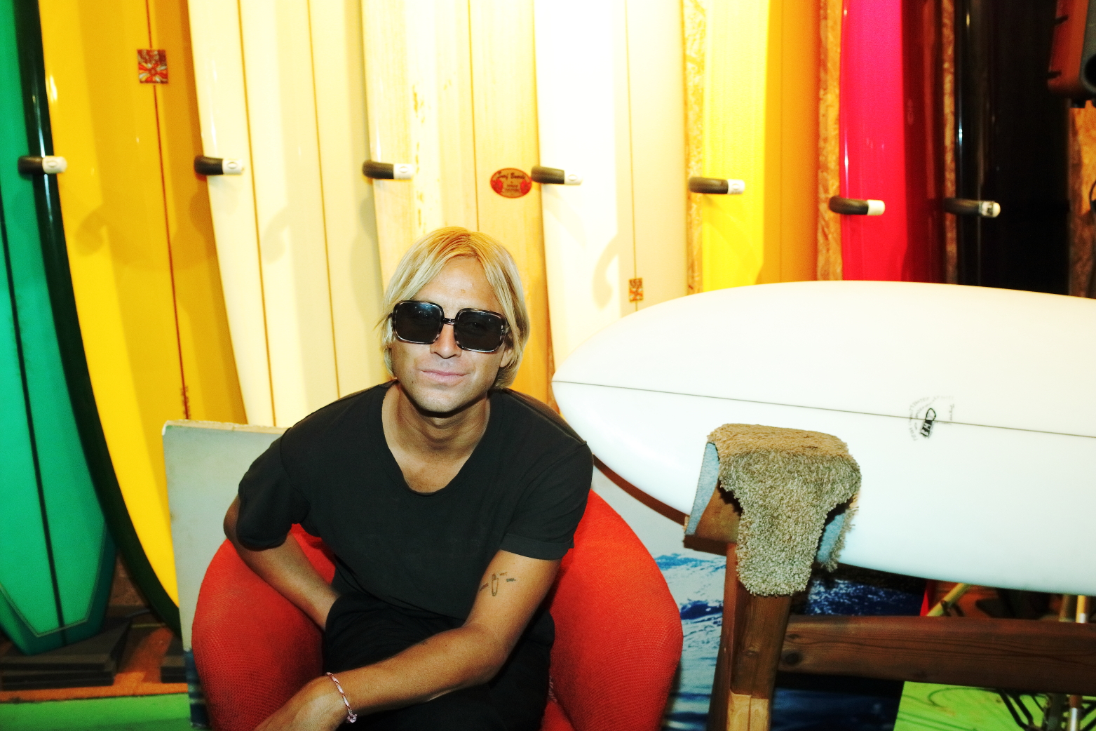 本職のシングルフィン・ログはもちろん、ミッドレングスのシングルフィンに乗せても一際光る温故知新なスタイルをみせるカリフォルニアが生んだ世界的カリスマ・スタイルマスターAlex Knostが湘南でも深い歴史を持つサーフショップ”California”に姿を現した。