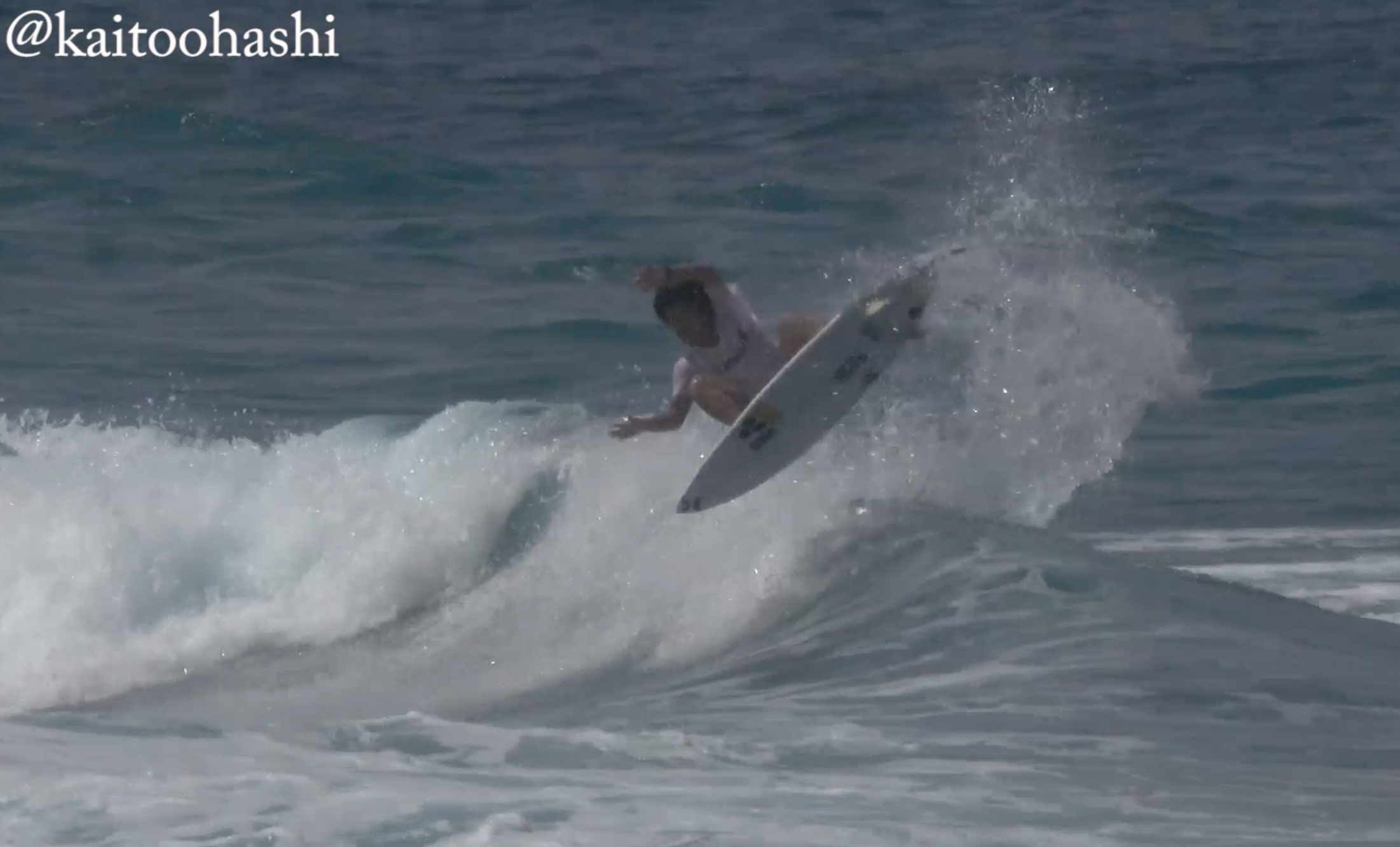 準備中に波チェック中のハワイアンチームのImaikalani DevaultとUS OPENで大原洋人とファイナルで対戦したTanner Hendrixが合流しセッションになった。