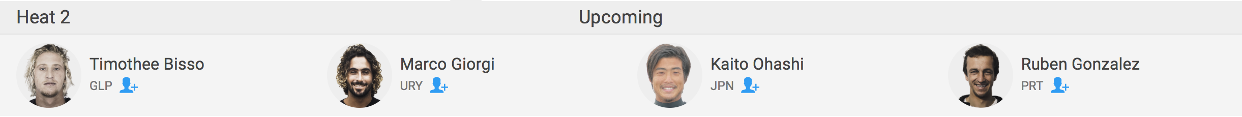 迎えるラウンド3のヒート2ではTimothee Bisso(GLP)、Marco Giorgi(URY)、Ruben Gonzalez(PRT)と対戦予定となっている。