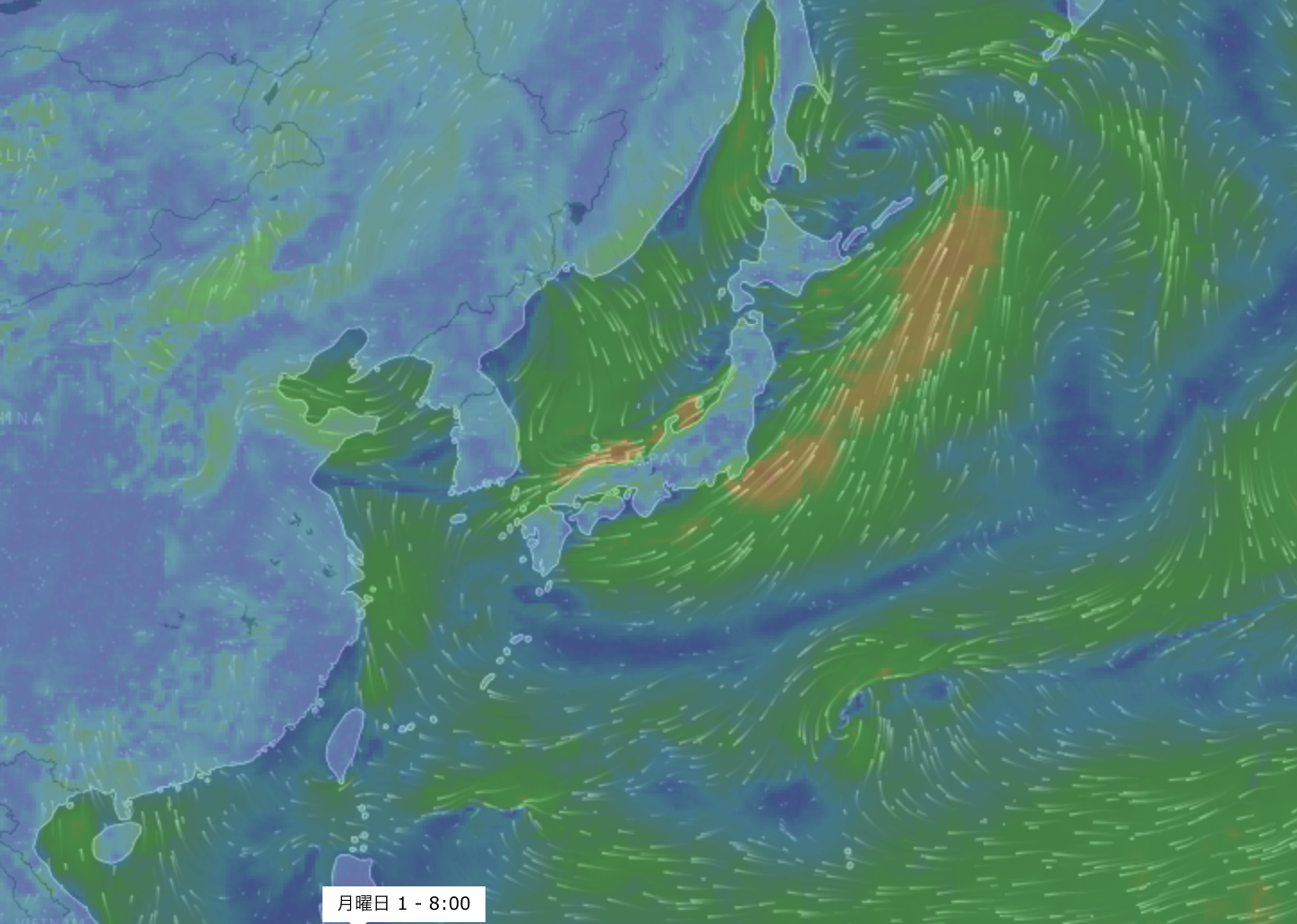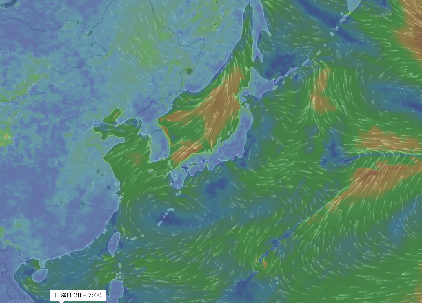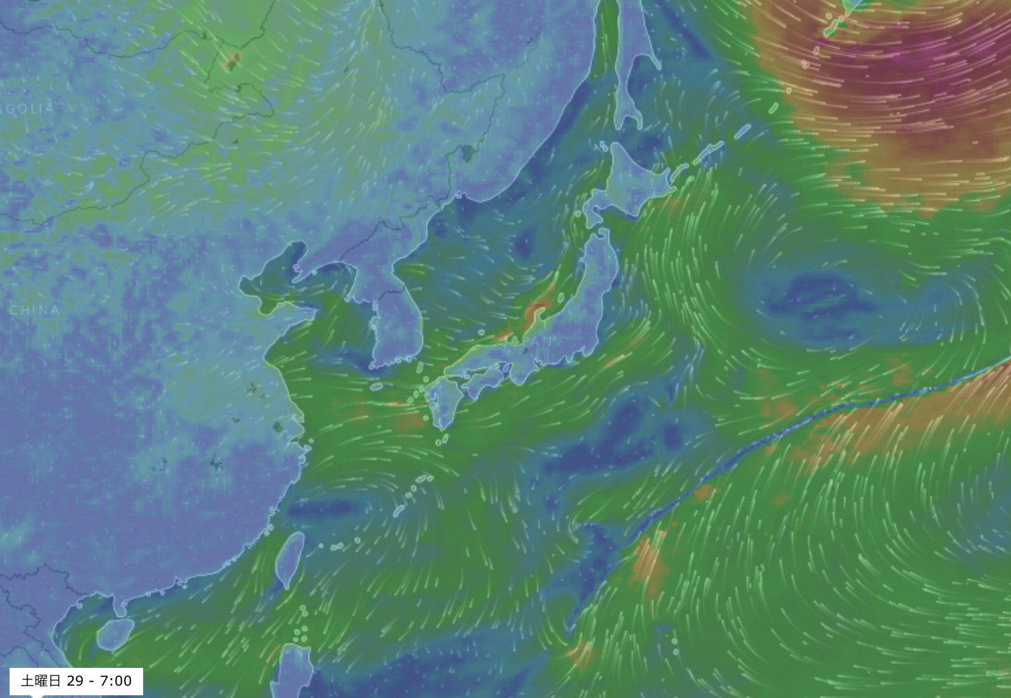進路予想では4/29(土)には北緯20°線を超えて小笠原諸島の近くまで達する見込みとなっている。