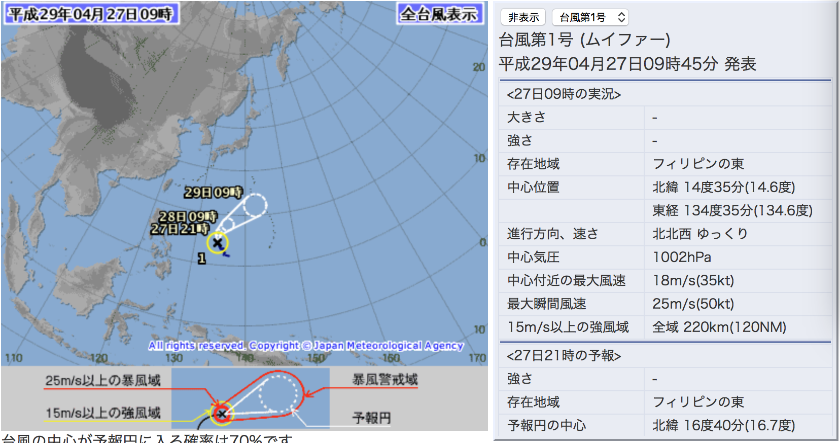 ゴールデンウィーク前に4/26(水)午前9時に、台風1号ムイファーがフィリピンの東で発生!
