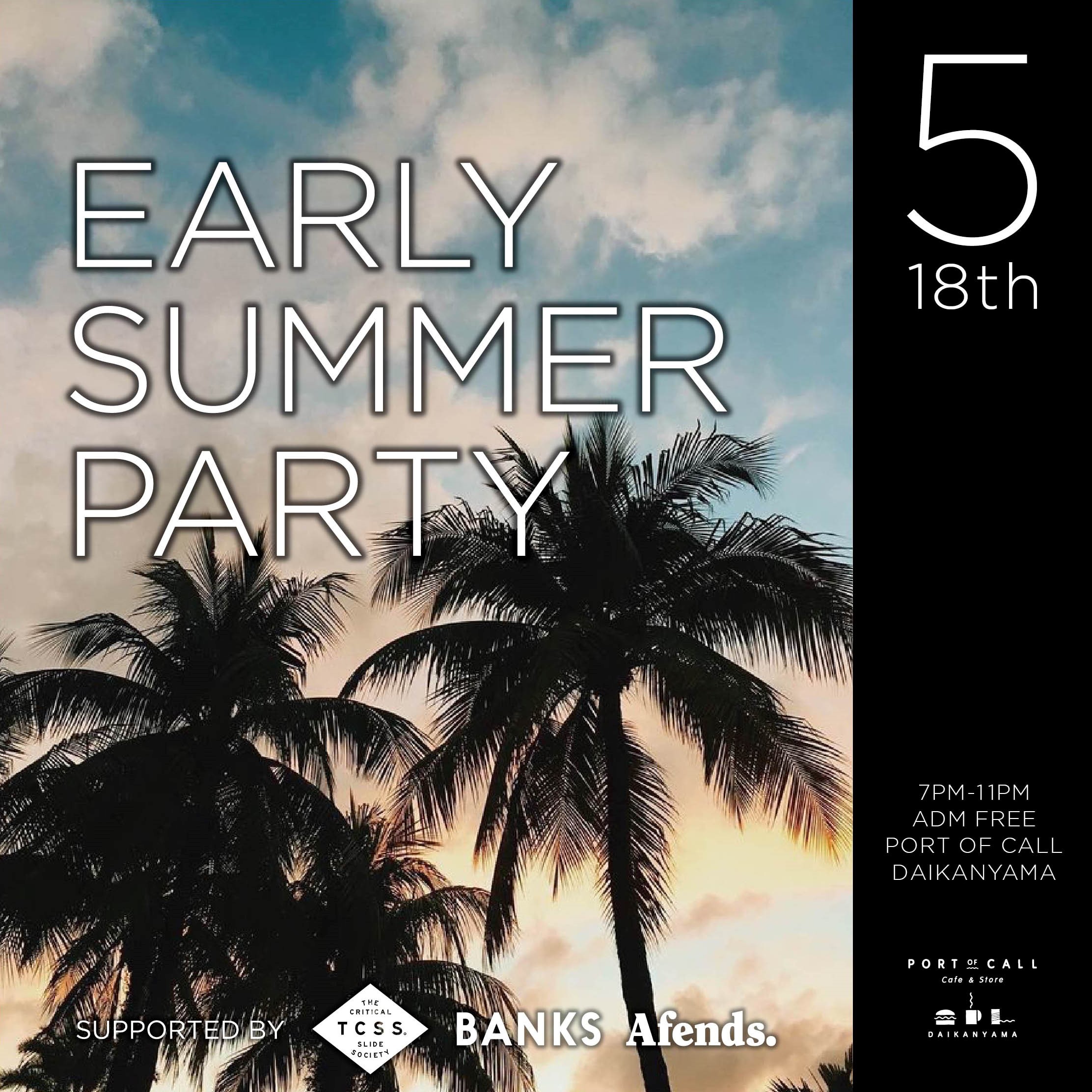 5/18(木)の19:00から23:00に渡り、PORTofCALL代官山にて”EARLY SUMMER PARTY”が開催されることが決定!