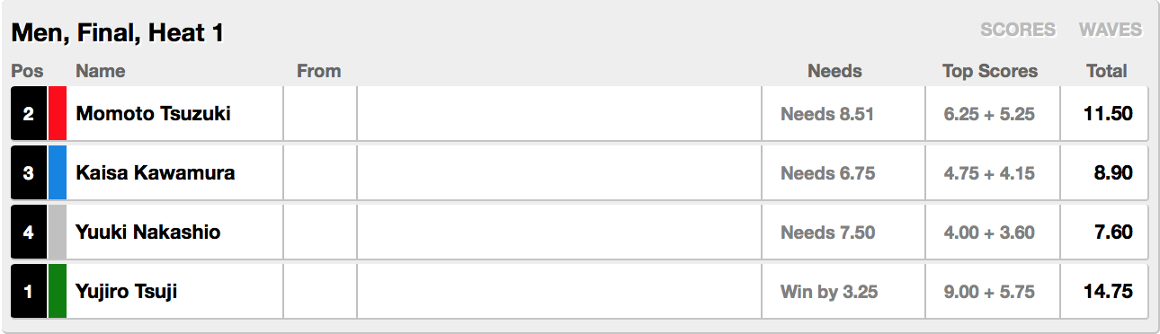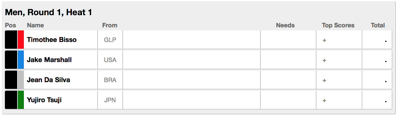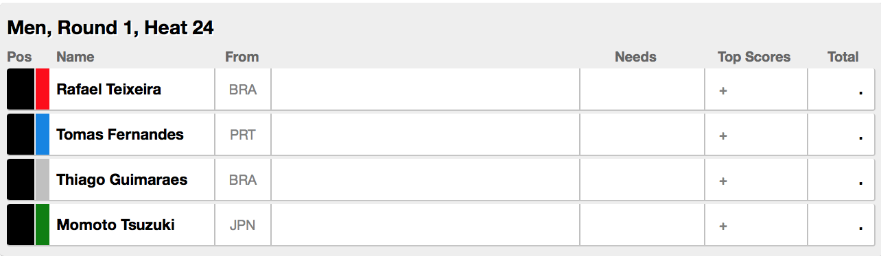 とのコメントを残してくれた都筑百斗はラウンド1のヒート24でRafael Teixeiera(BRA)、Tomas Fernandes(PRT)、Thiago Guimaraes(BRA)と対戦予定。