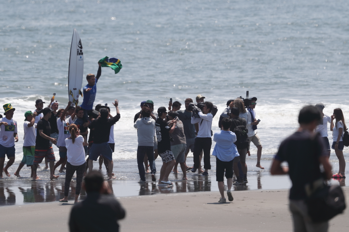 クオリティーの高いターンと安定感のあるエアを武器に、日本のサーフィン道場と呼ばれる志田下の波を制したJesse Mendes(BRA)。現在QSランキングトップを独走するだけあり、世界トップレベルのサーフィンを見せてくれた。Jesse Mendes(BRA).