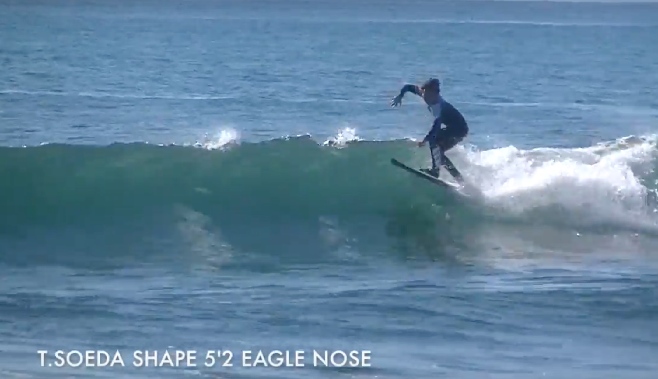 最年少THE SURFSKATERSチャンプの経歴を持つ若手プロサーファーでありながらも、今シーズンはロングボードのプロ資格も獲得するや否やプロのコンテストで上位入賞を果たすなど、その生まれ持った横乗りに対する才能を開花させつつある注目の若き横乗りマスター浜瀬海が、本人はもちろん、脇田泰地や鈴木仁といった同じRockDanceチームの若手プロたちも大絶賛する添田知博シェイプのEAGLENOSE 5’2”を地元平塚の小波でテストライド!!