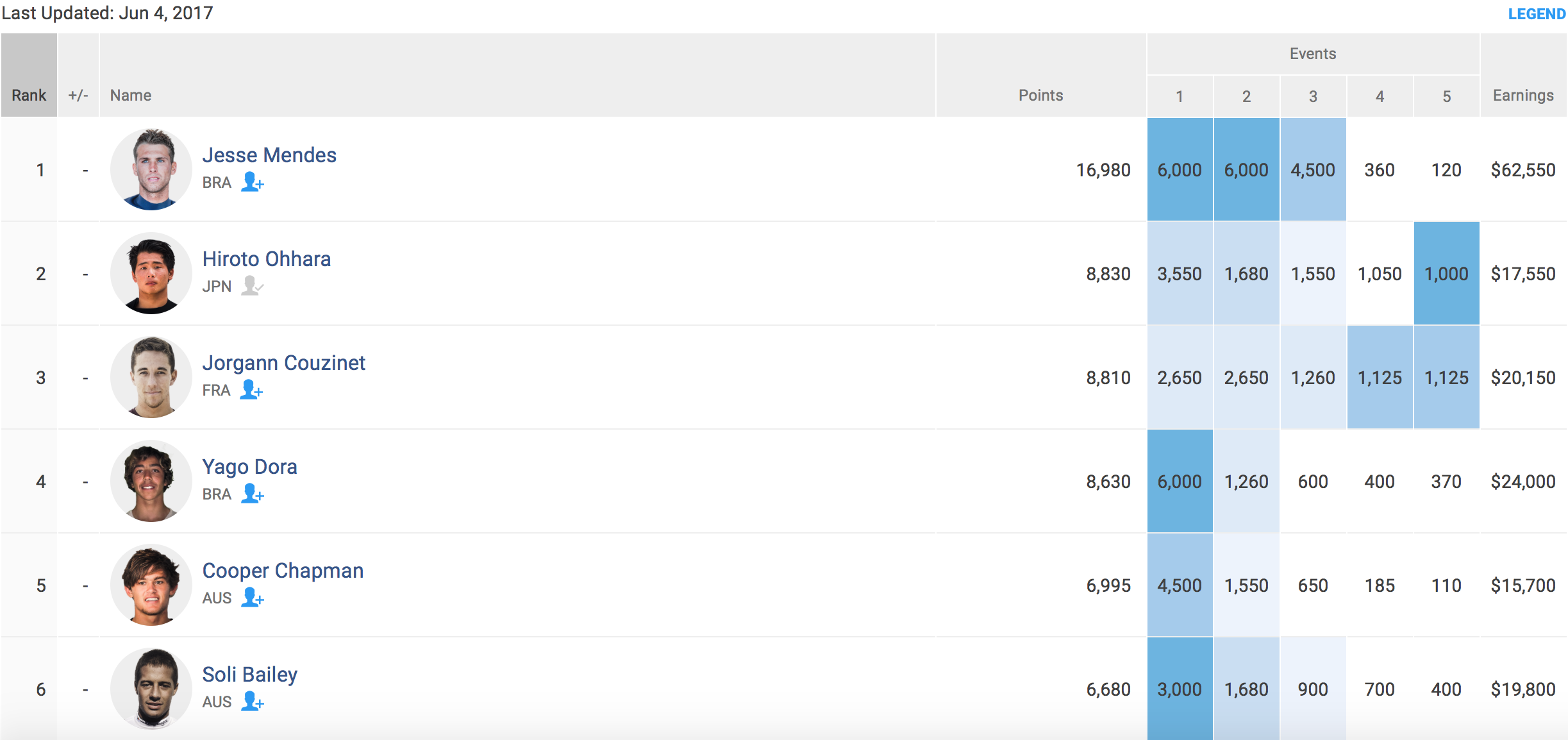 6/14(水)から6/18(日)までをコンテスト期間とし、ダーバンで開催されるQS6000”Volkswagen SA Open of Surfing”に加え、7/3(月)から7/9(日)に渡ってバリトで開催されるQSの中で最もグレードが高くQSランキング上位の選手のみしか出場すら許されないQS10000”Balito Pro”に出場する予定。
