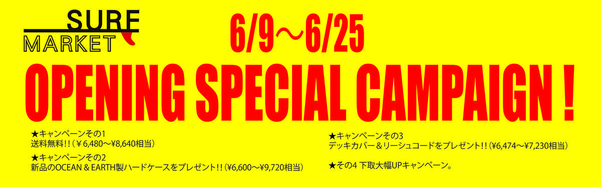 それを記念し、SURF MARKETでは6/25(日)までオープニング・スペシャル・キャンペーンを実施中!