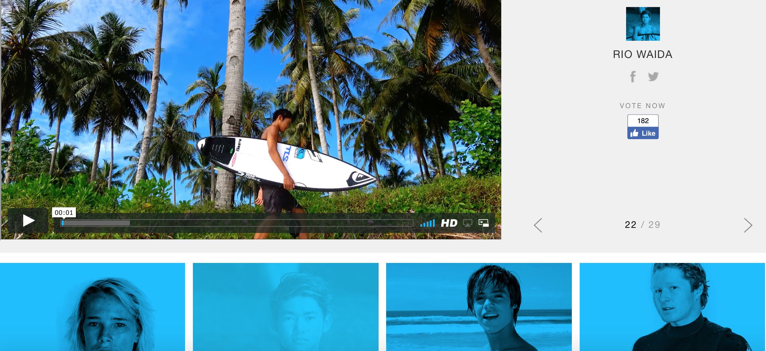18歳以下のジュニアサーファーたちを対象に、QUIKSILVERが毎年開催しているオンライン動画投稿型ジュニア世界選手権大会とも言うべきYoung Guns!