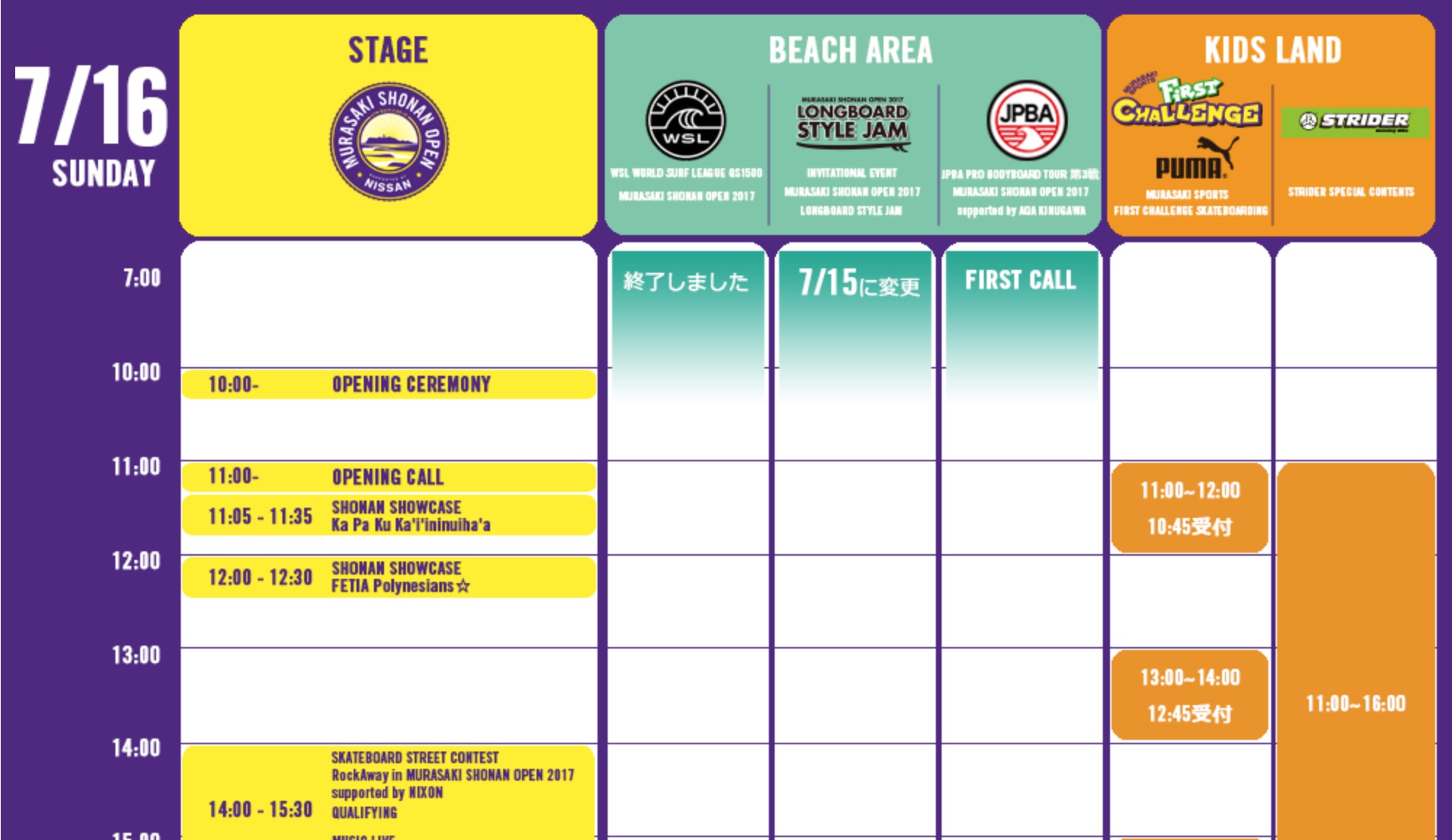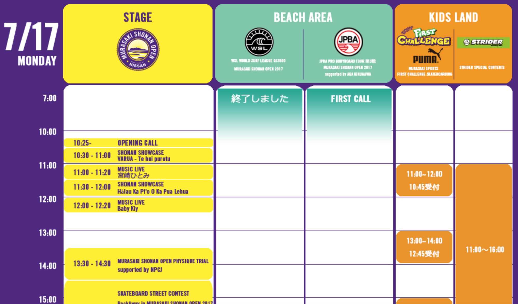 そこで今回は、昨年のムラサキ湘南オープンのパークエリアの様子を収録したcolorsmagオリジナル動画と共に、今年のスケジュールを再確認できるようにスケジュール表を添えてここにお届け!!