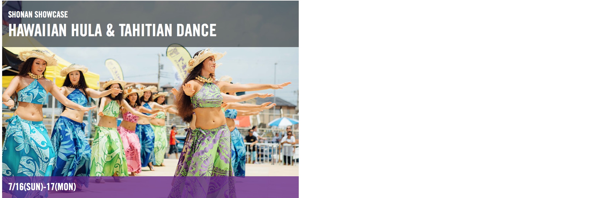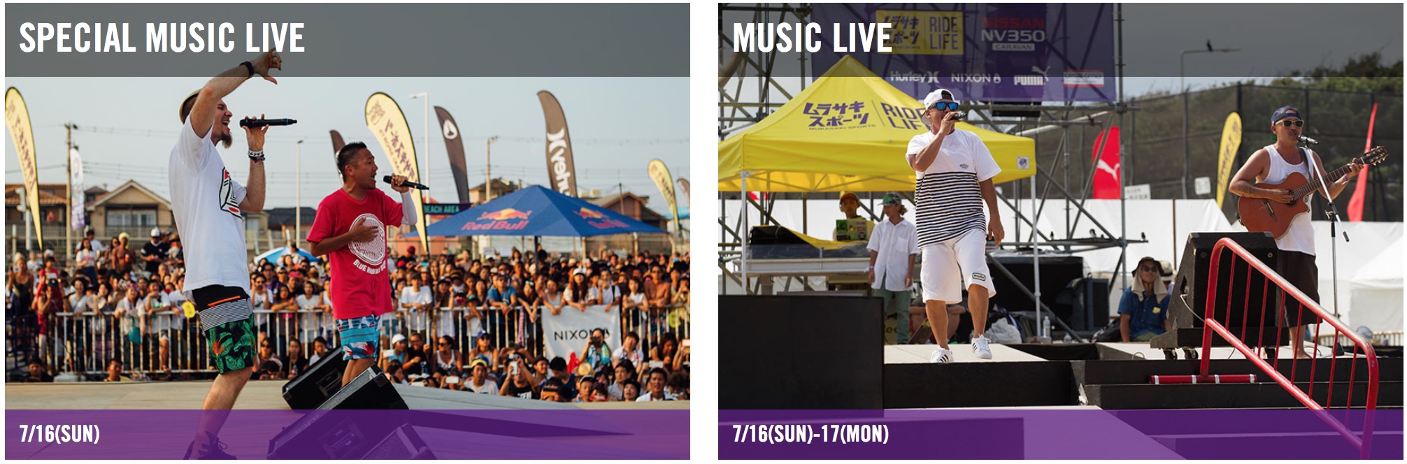 7/16(日)から7/17(月)の2日間に渡ってスケートパークを会場とするパークエリアでは、フードコートやサーフブランド各社のブースが軒を連ね、ステージではスケートボードやBMXのコンテストをはじめ音楽ライブにフラダンスショーなど誰でも楽しめる催し物が盛りだくさんとなっている!