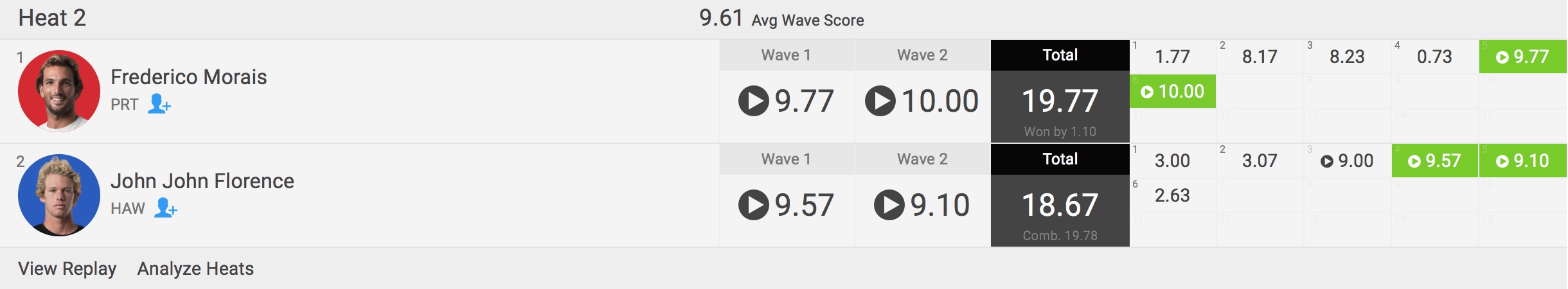 なぜかFrederico Moraisの10ptライドだけ動画がアップされておらず、こちらの長いヒートリキャップ映像になりますが、John John Florenceも含めてぜひチェックしてみてください!