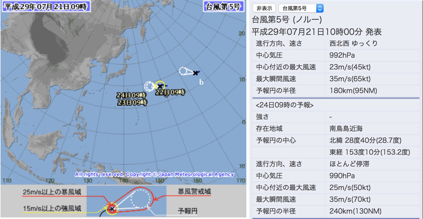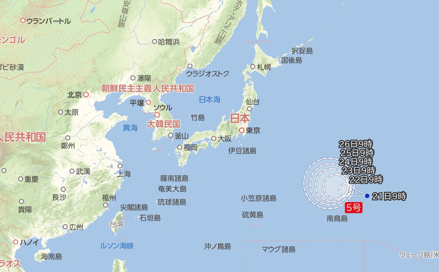 7/19(水)に関東甲信、東海、近畿、中国地方に渡って梅雨明けが発表されて間もない本日7/21(金)の午前10:00、南鳥島近海で台風5号ノルーが発生した!