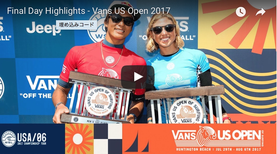 MENSではハンティントンビーチをホームブレイクとするカノア五十嵐が、WOMENSでは同じくカリフォルニア出身のSage Ericsonが初優勝を遂げた本イベントのファイナルデイの模様を収録したWSLオフィシャルによるファイナルデイのハイライト動画をお届け!!