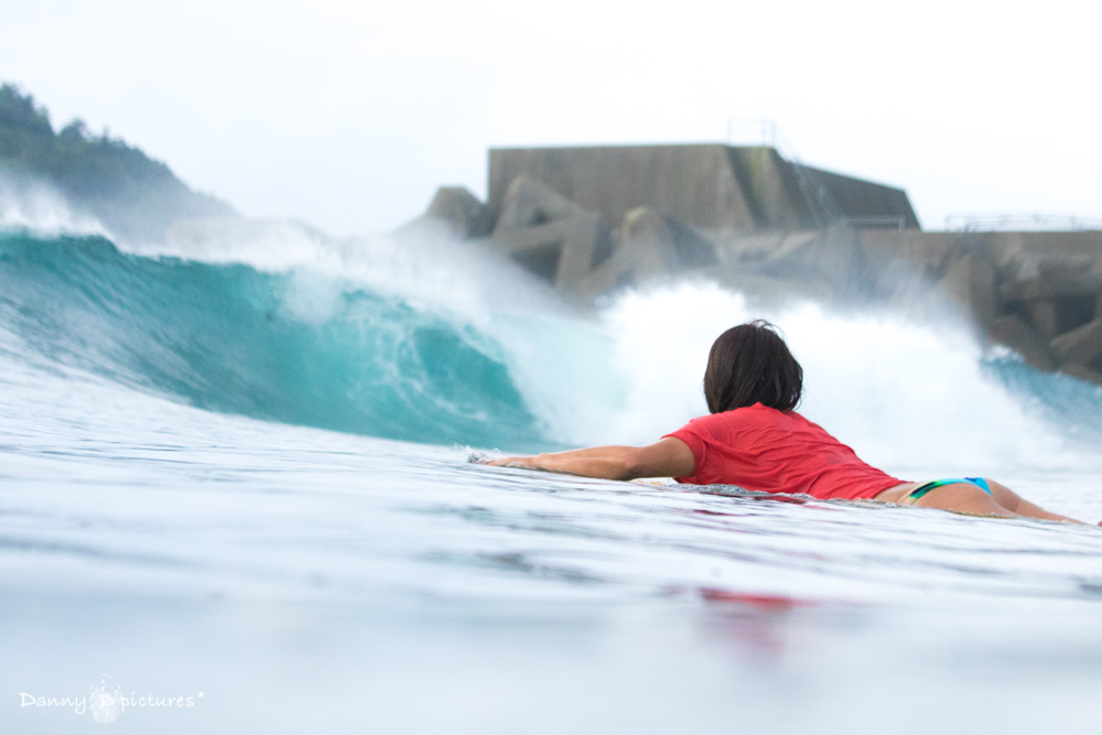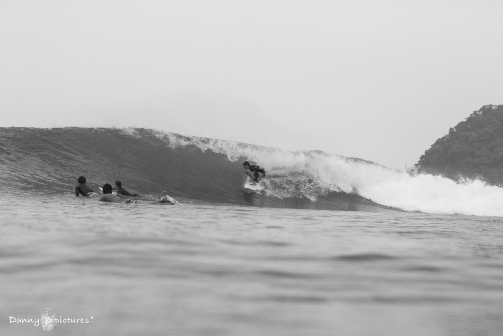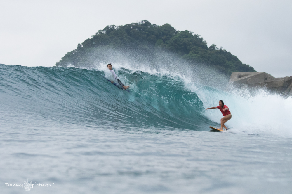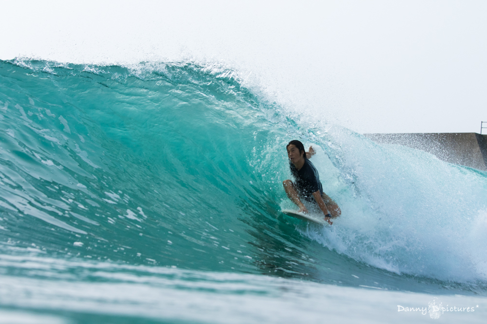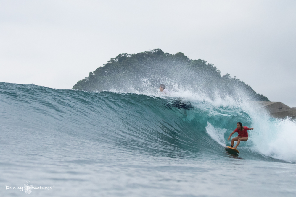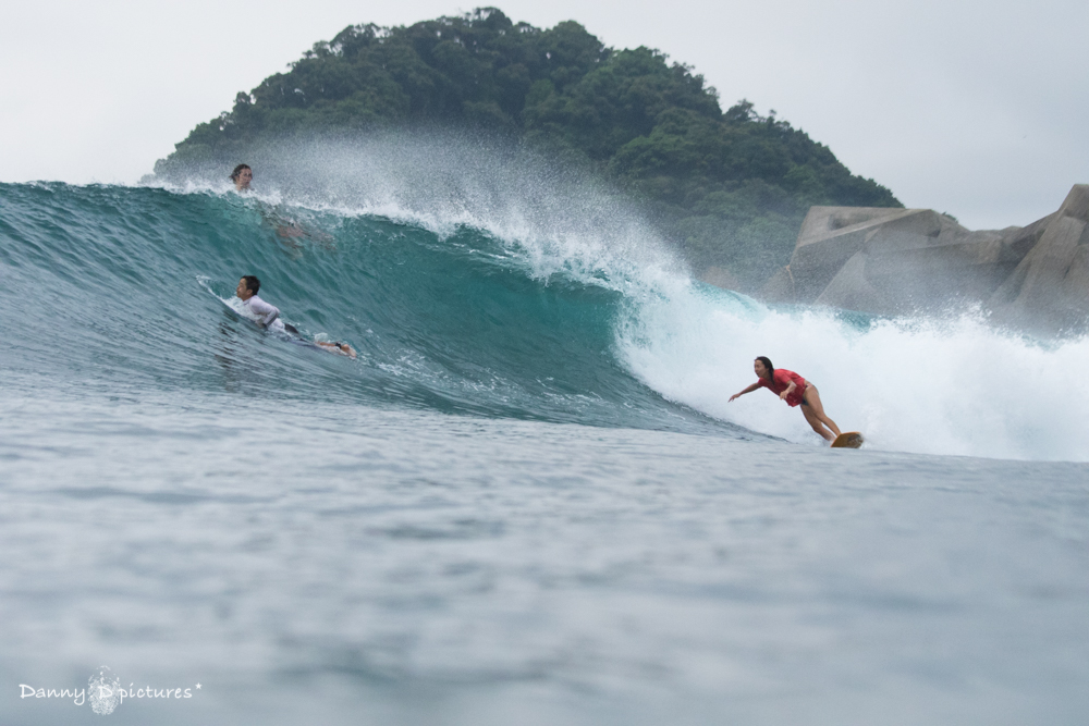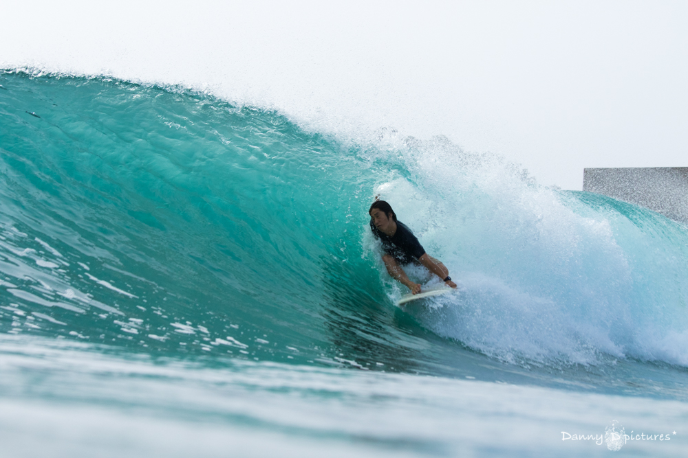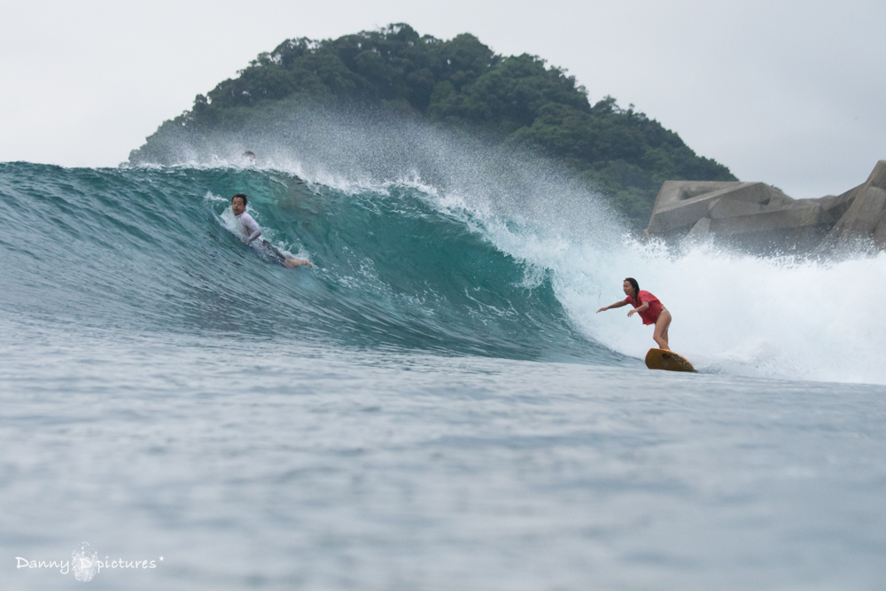 現在は地元の舞鶴でFLX surfshopを営む間屋口 峻英 proも年少時はこの場所で過ごしsurfingを磨いていただけに活き活きとsurfしていた。