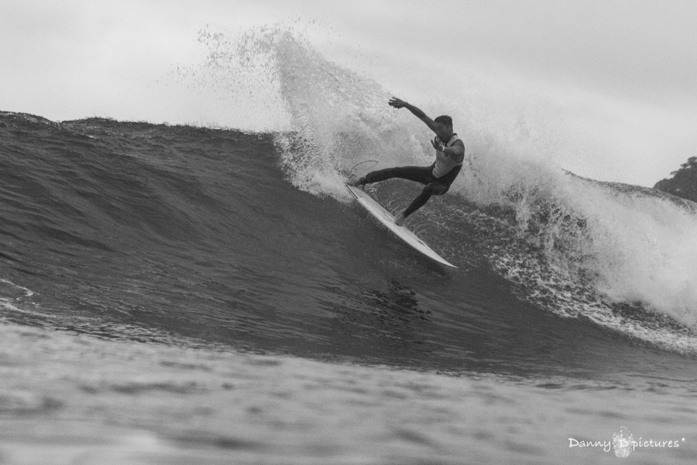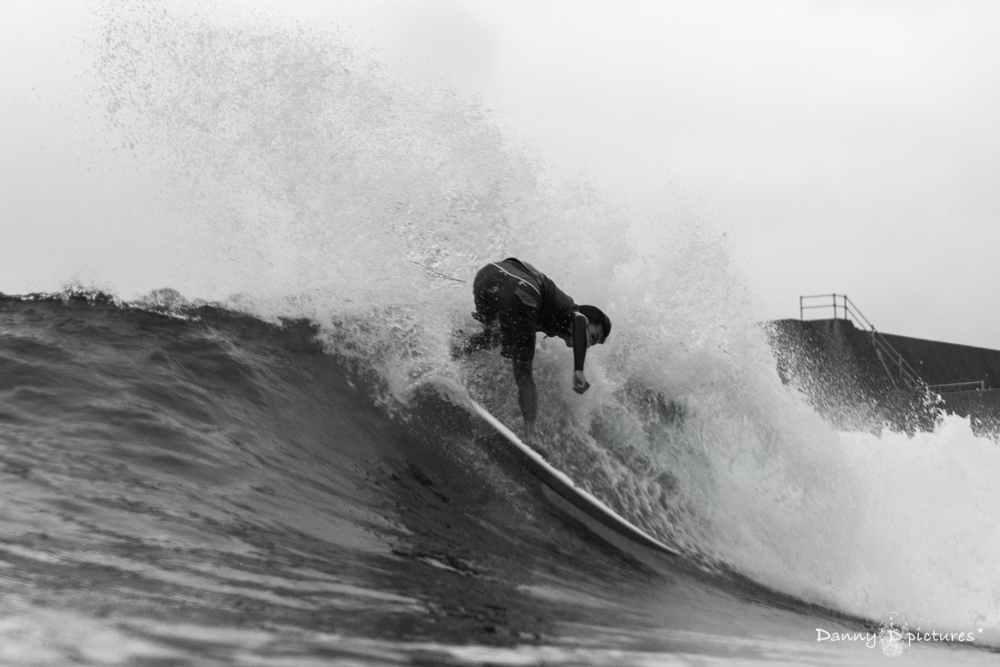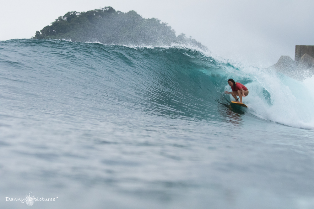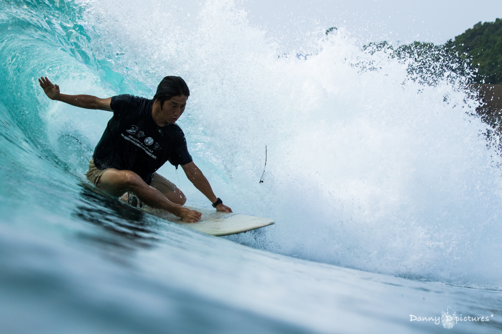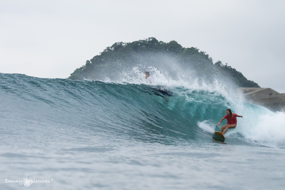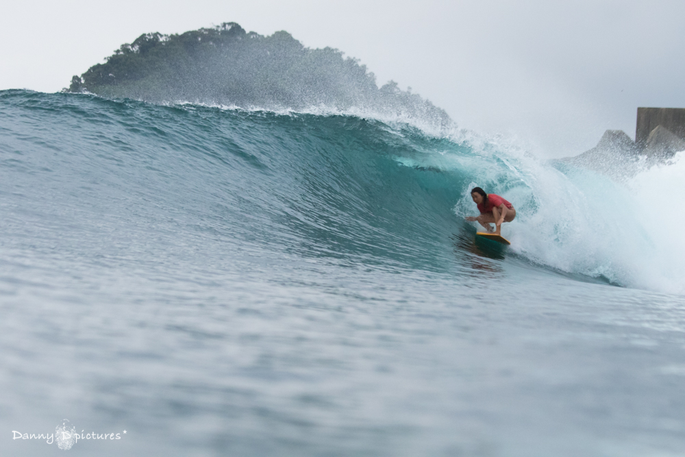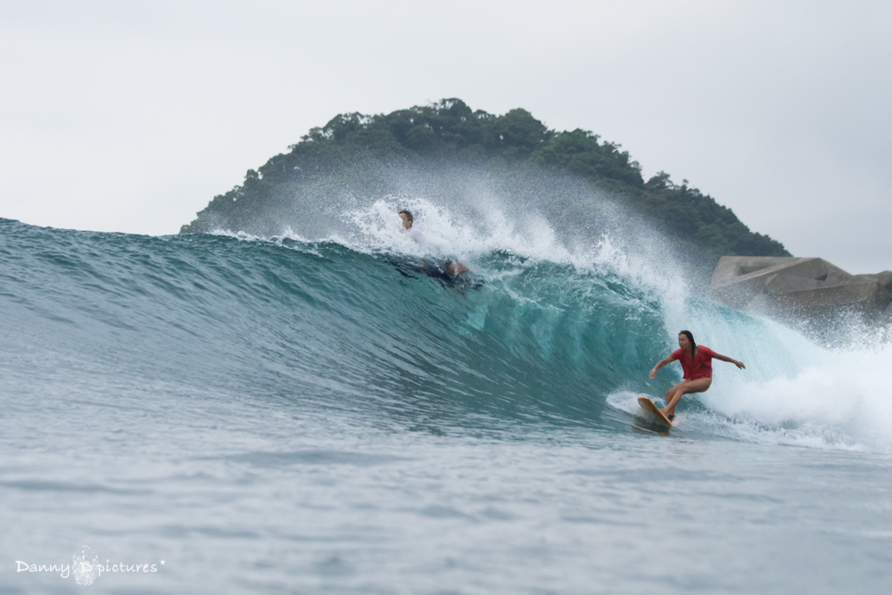 現在は地元の舞鶴でFLX surfshopを営む間屋口 峻英 proも年少時はこの場所で過ごしsurfingを磨いていただけに活き活きとsurfしていた。