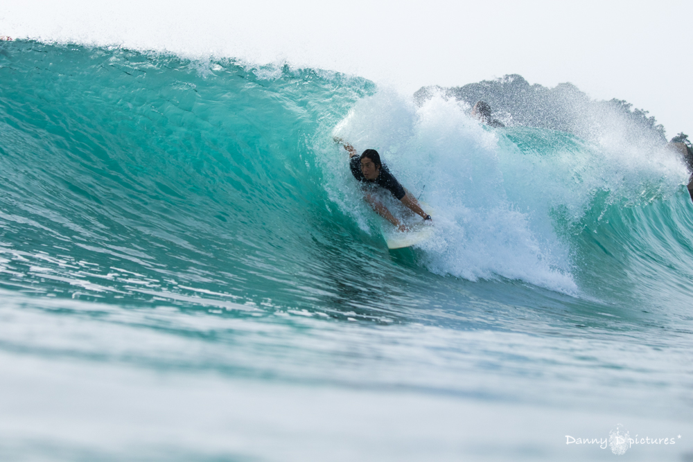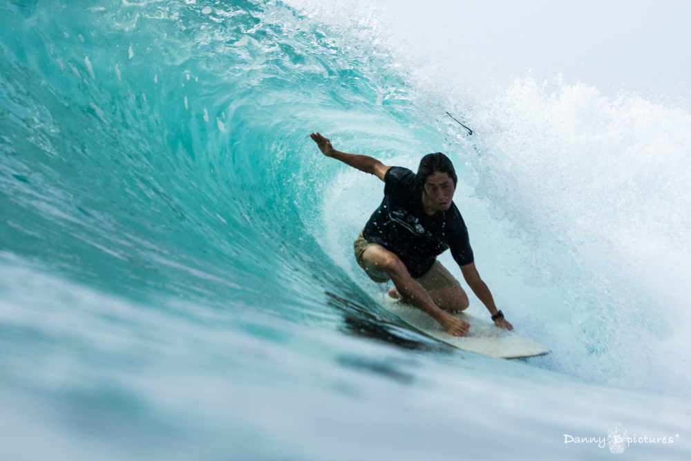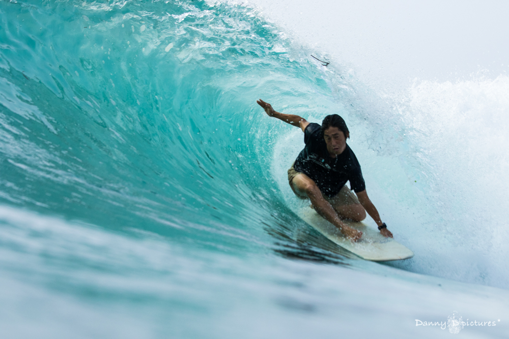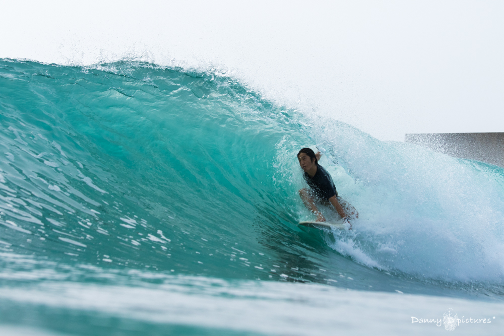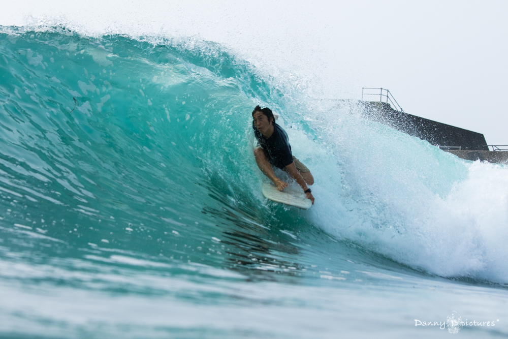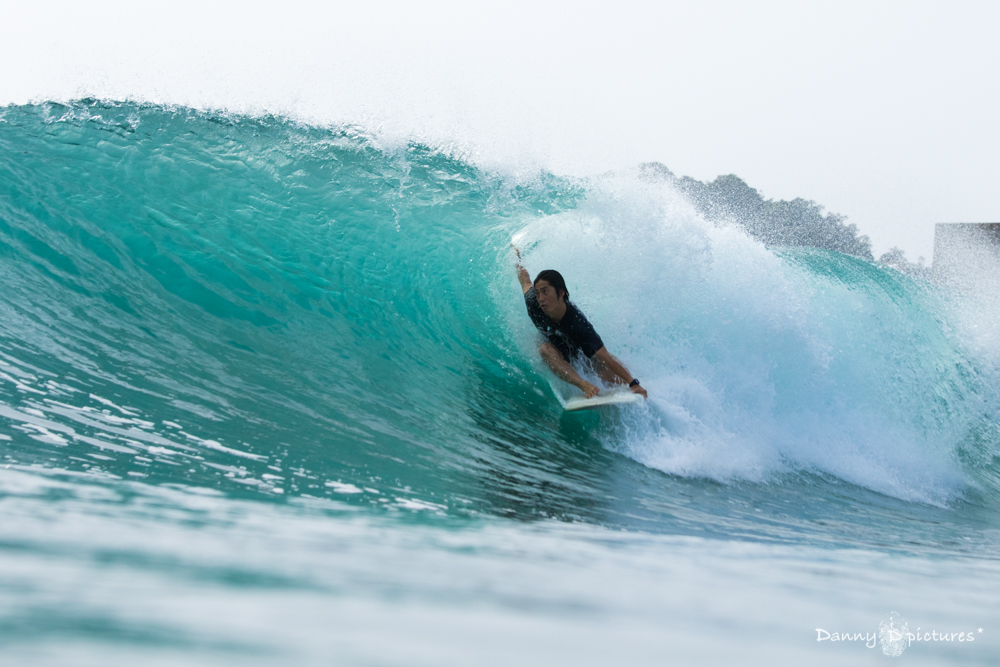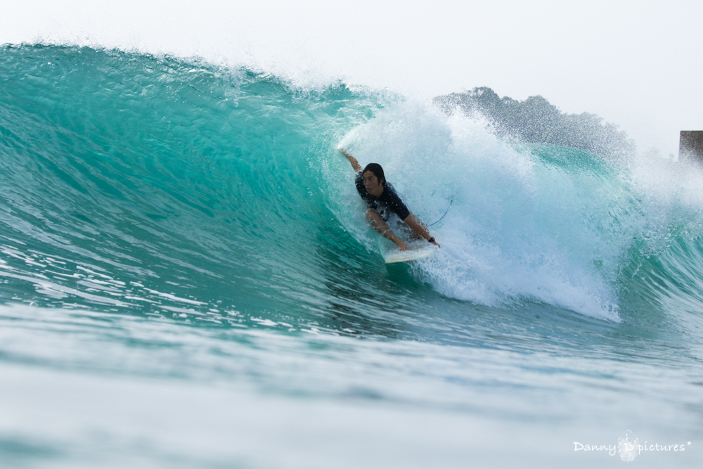 この日は最近お気に入りのFishでチューブからアクションまで素晴らしいsurfingを披露してくれた。