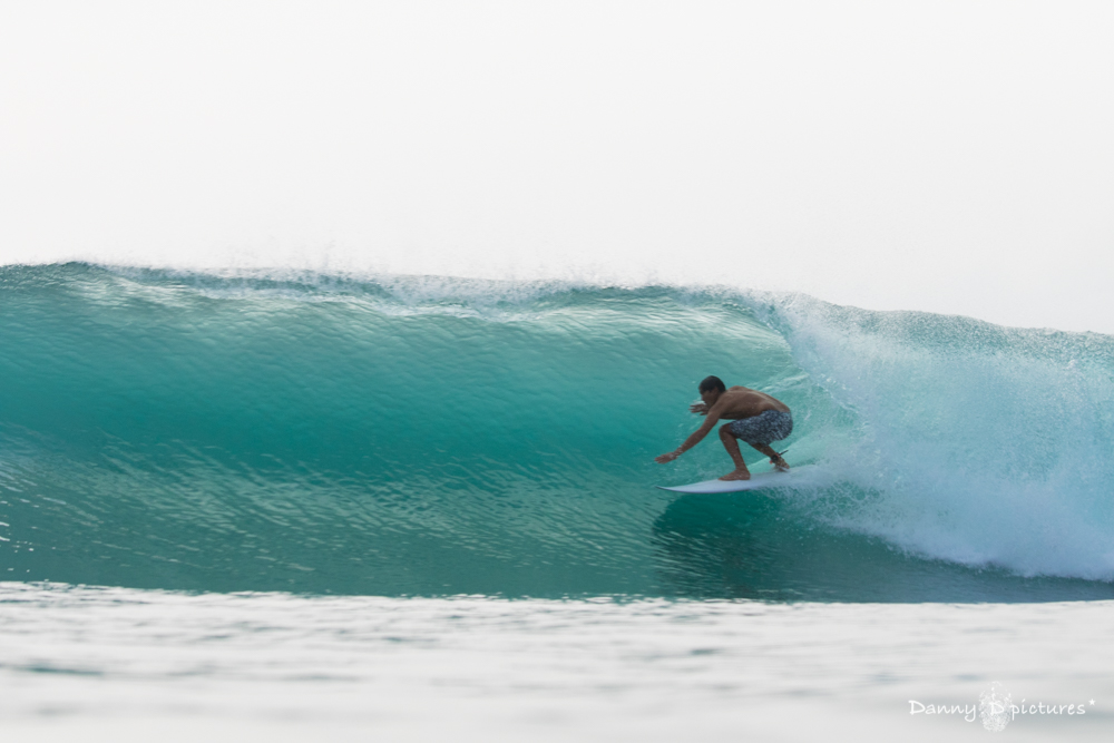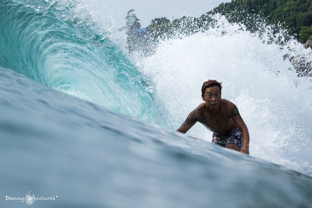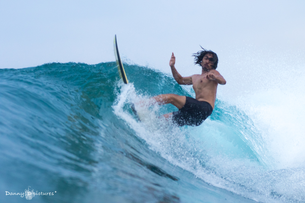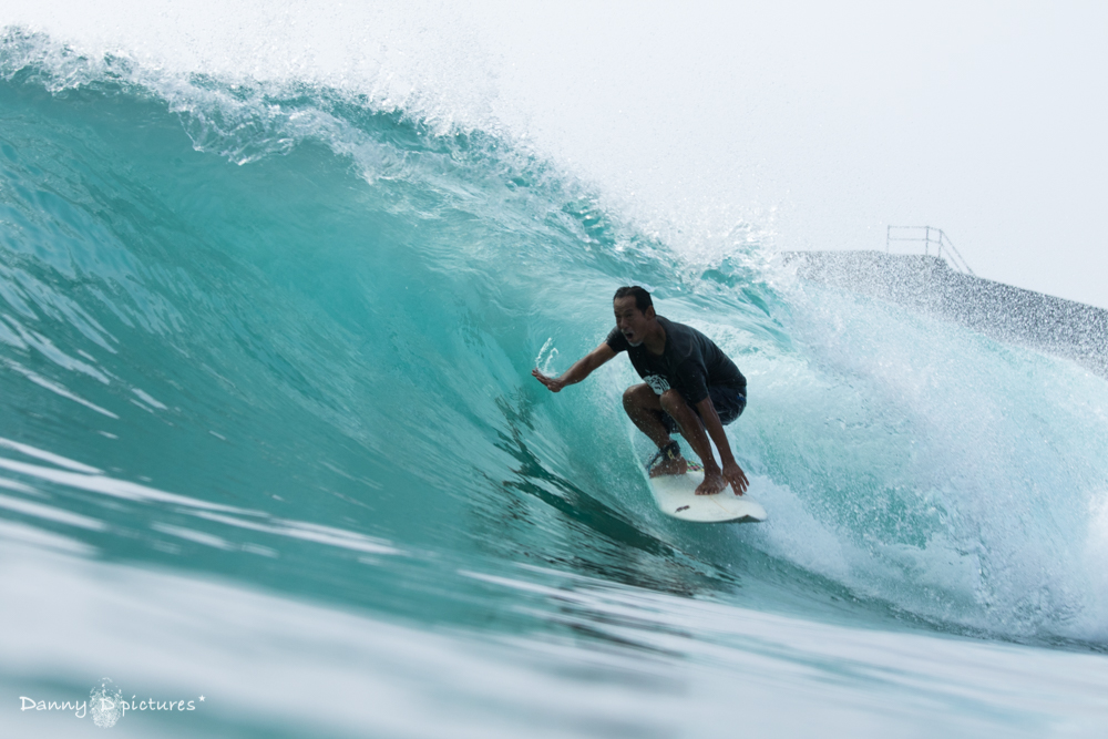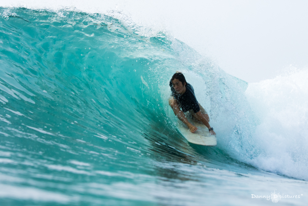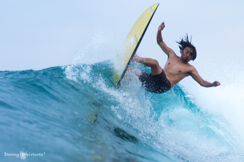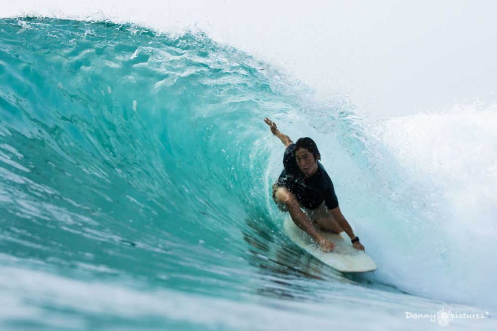 この日は最近お気に入りのFishでチューブからアクションまで素晴らしいsurfingを披露してくれた。