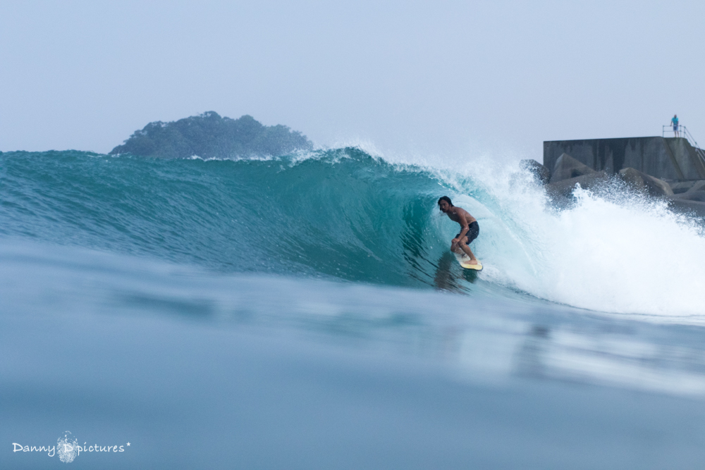 今でも地形が決まり波が上がると舞鶴からのロングドライブも臆する事なく、必ずといっていい程この場所に現れるかなりコアなサーファーである。