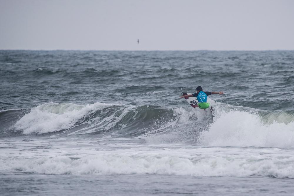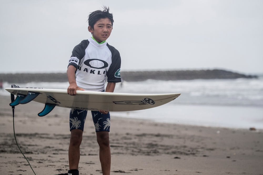アメリカのNSSAでは11歳以下クラスで全米チャンプに輝いた実績を持つ岩見天獅。ファイナルでは積極的に波を掴むもワイプアウトが命取りとなり、バックアップをまとめ切ることができず、不本意にも2位に甘んじた。Tenshi Iwami.