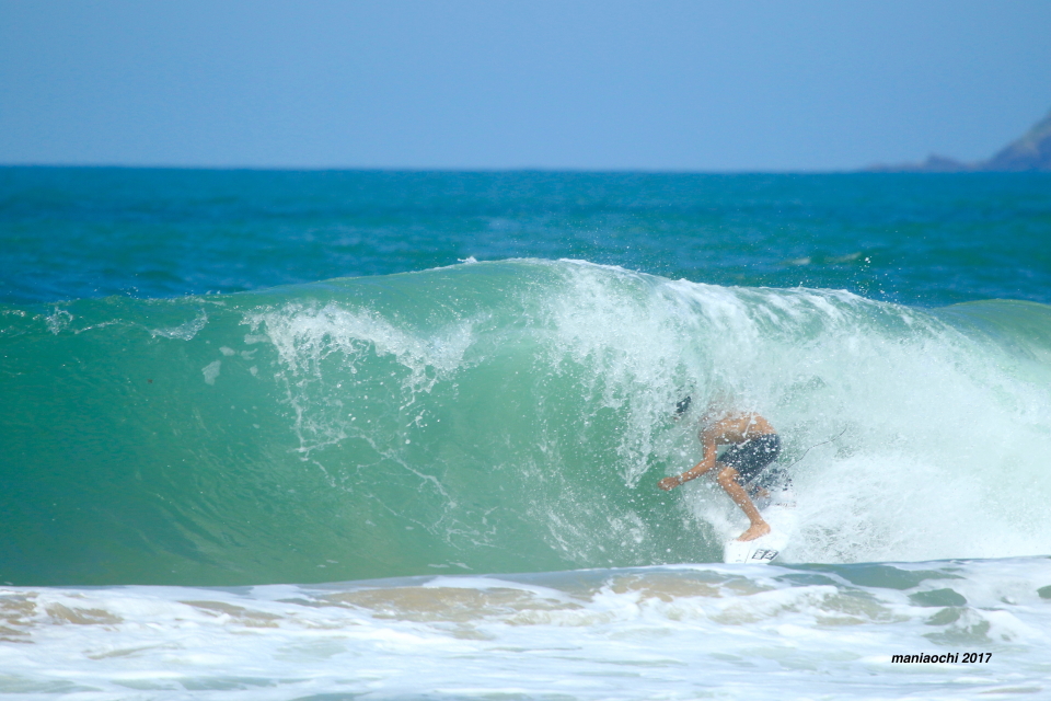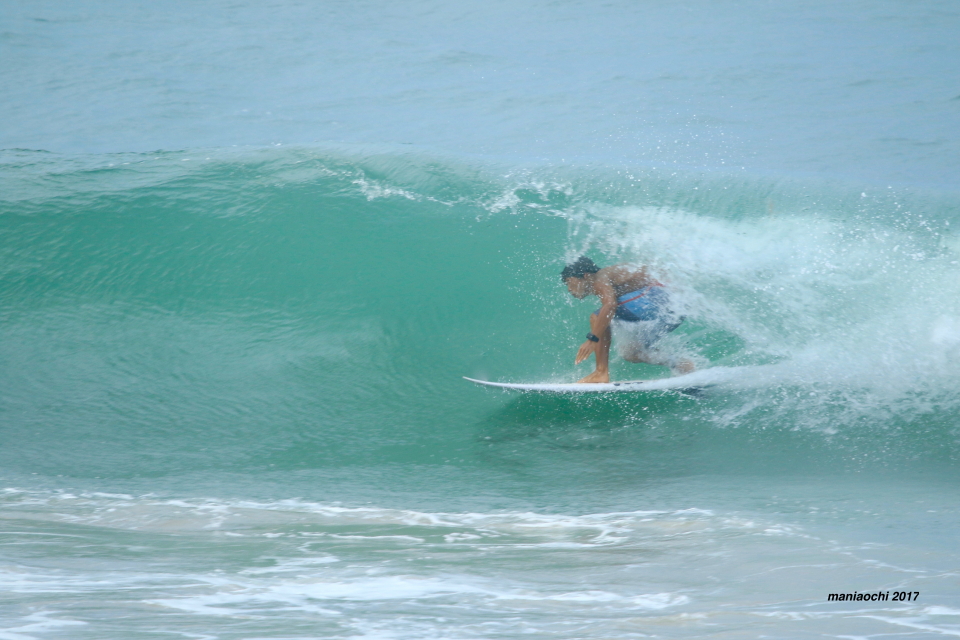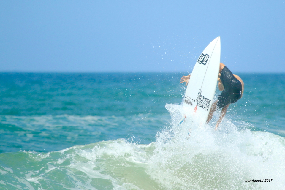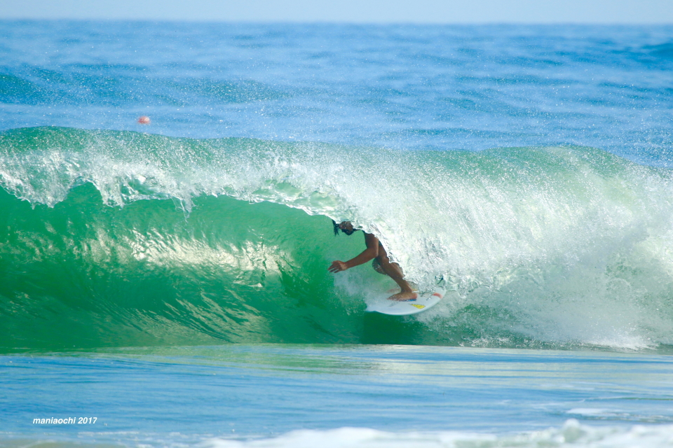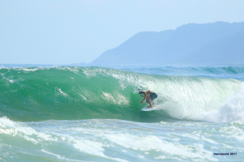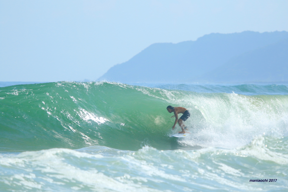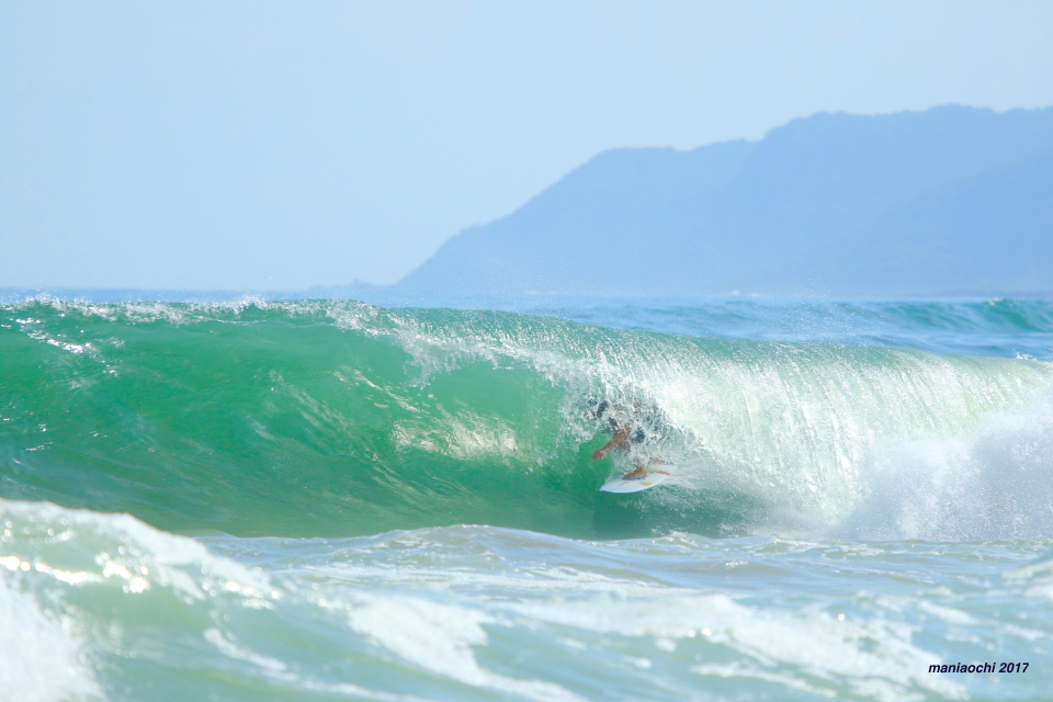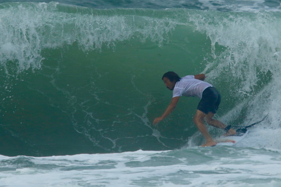 全体的に早めのブレイクではあったがその中でもここぞ!という狙えるブレイクポイントに狙いを定め真夏の日本海ビーチブレイクバレルを何本も抜けていく間屋口 峻英プロ。時間帯でコンディションが変化する日本海ブレイクの難しさを知っているだけにそのいい時間帯に多くのバレルショットを残していった。ほぼ貸切の日本海ビーチブレイクでのバレルはなかなか貴重な夏の思い出となったに違いない。