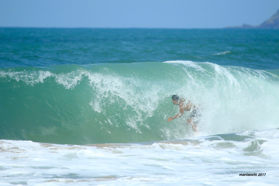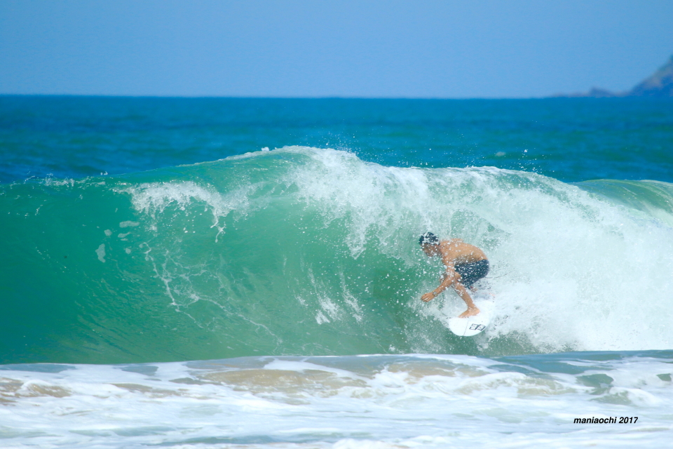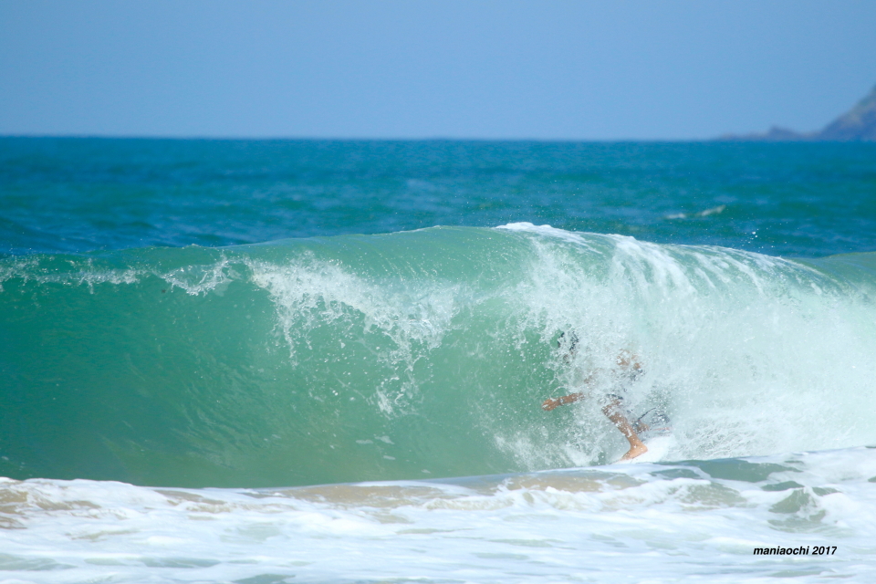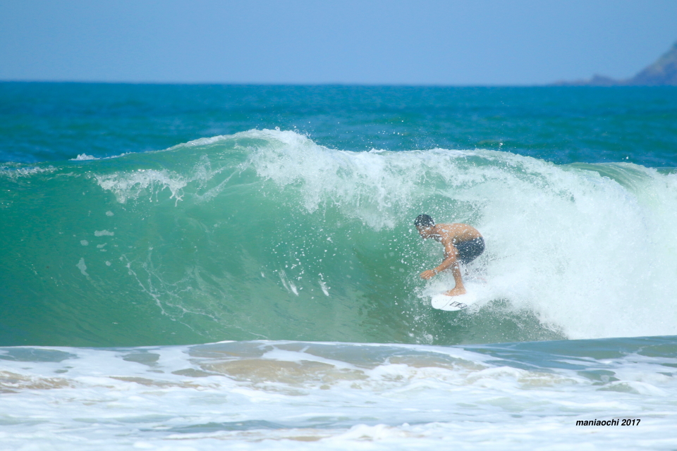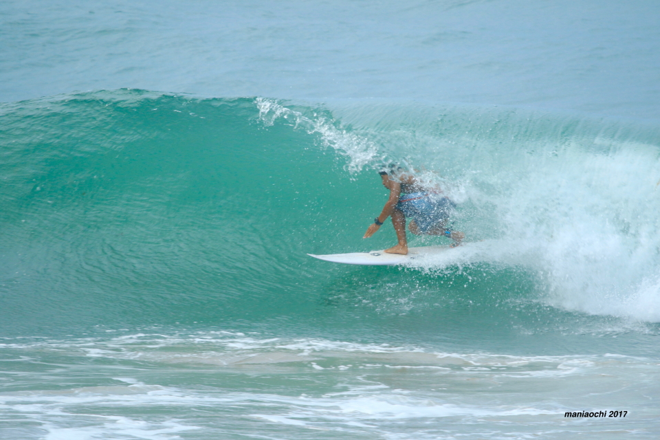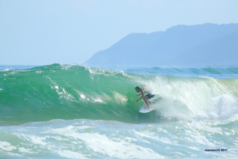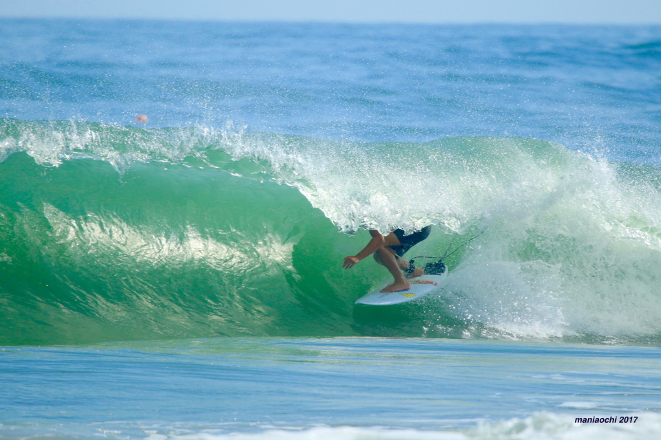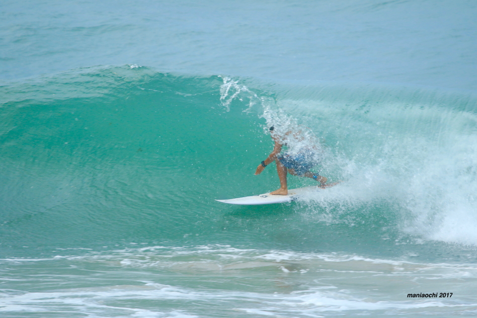 全体的に早めのブレイクではあったがその中でもここぞ!という狙えるブレイクポイントに狙いを定め真夏の日本海ビーチブレイクバレルを何本も抜けていく間屋口 峻英プロ。時間帯でコンディションが変化する日本海ブレイクの難しさを知っているだけにそのいい時間帯に多くのバレルショットを残していった。ほぼ貸切の日本海ビーチブレイクでのバレルはなかなか貴重な夏の思い出となったに違いない。