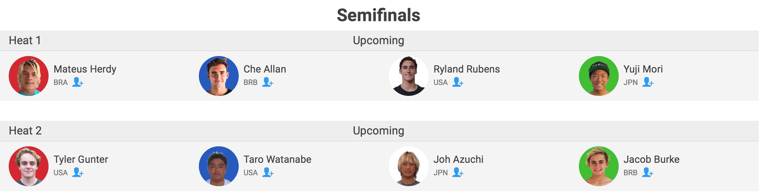 迎えるセミファイナルでは森友二がヒート1でMateus Herdy(BRA)、Che Allen(BRB)、Ryland Rubens(USA)と対戦。