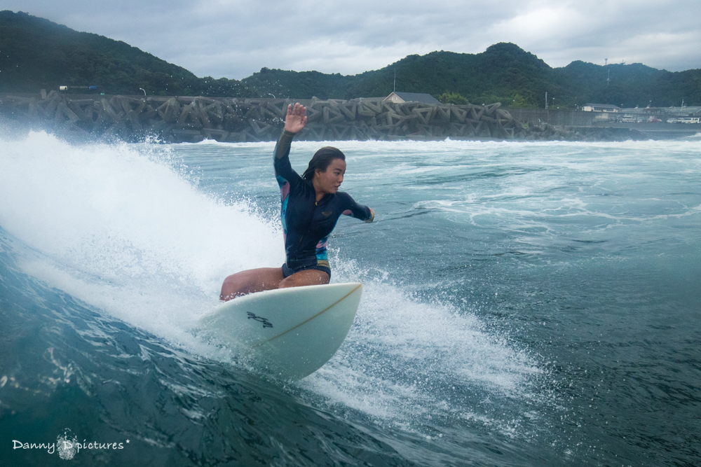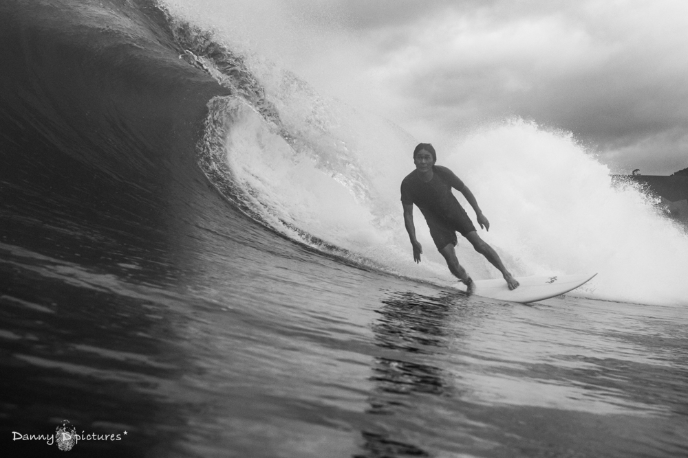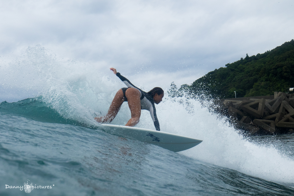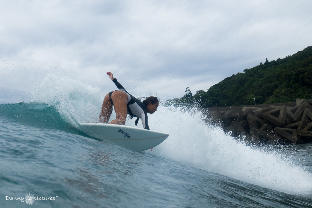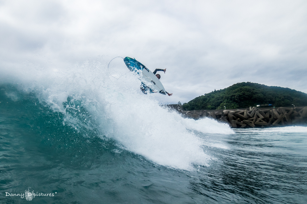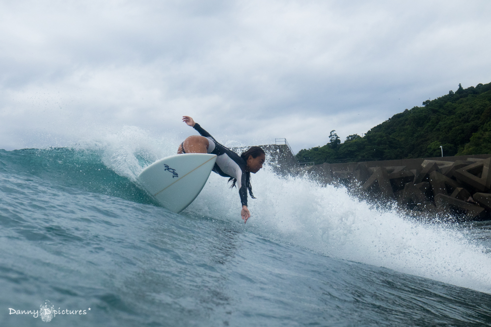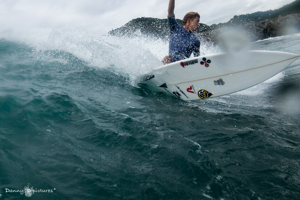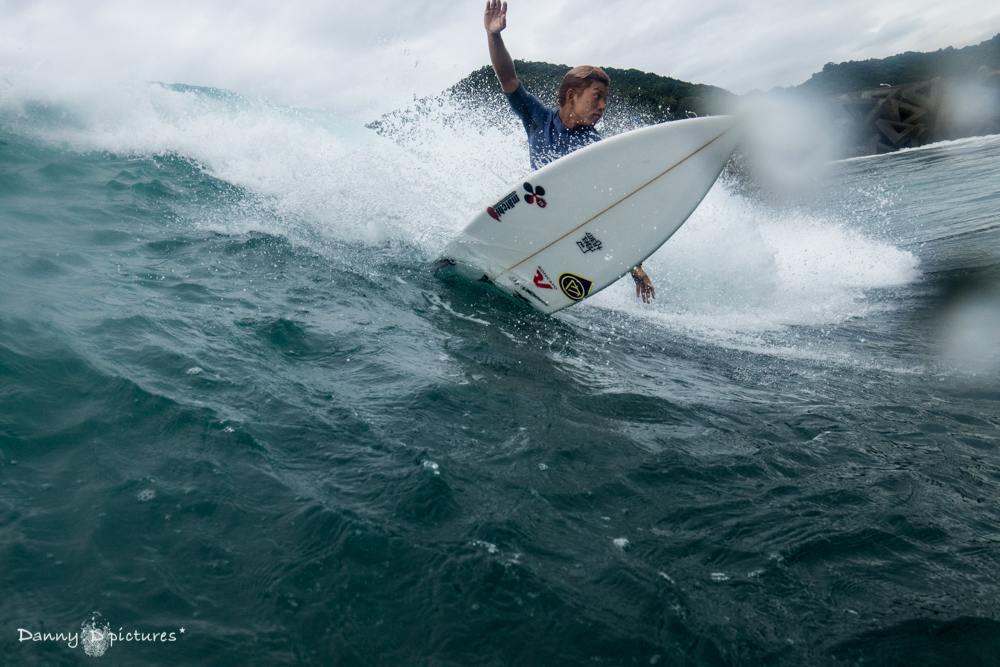 ここをホームとしているだけにこの日はスイッチスタンスでのライディングなどバリエーション豊なサーフィンを披露してくれた。