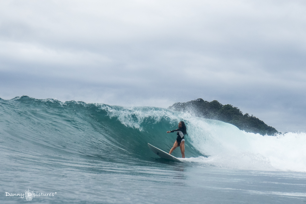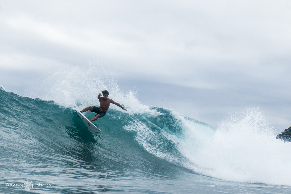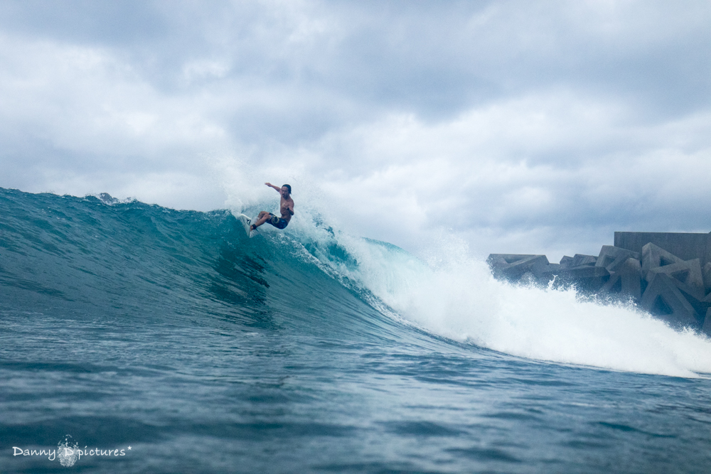 得意なパワフルなサーフィンでここの波を切り刻んでいた。