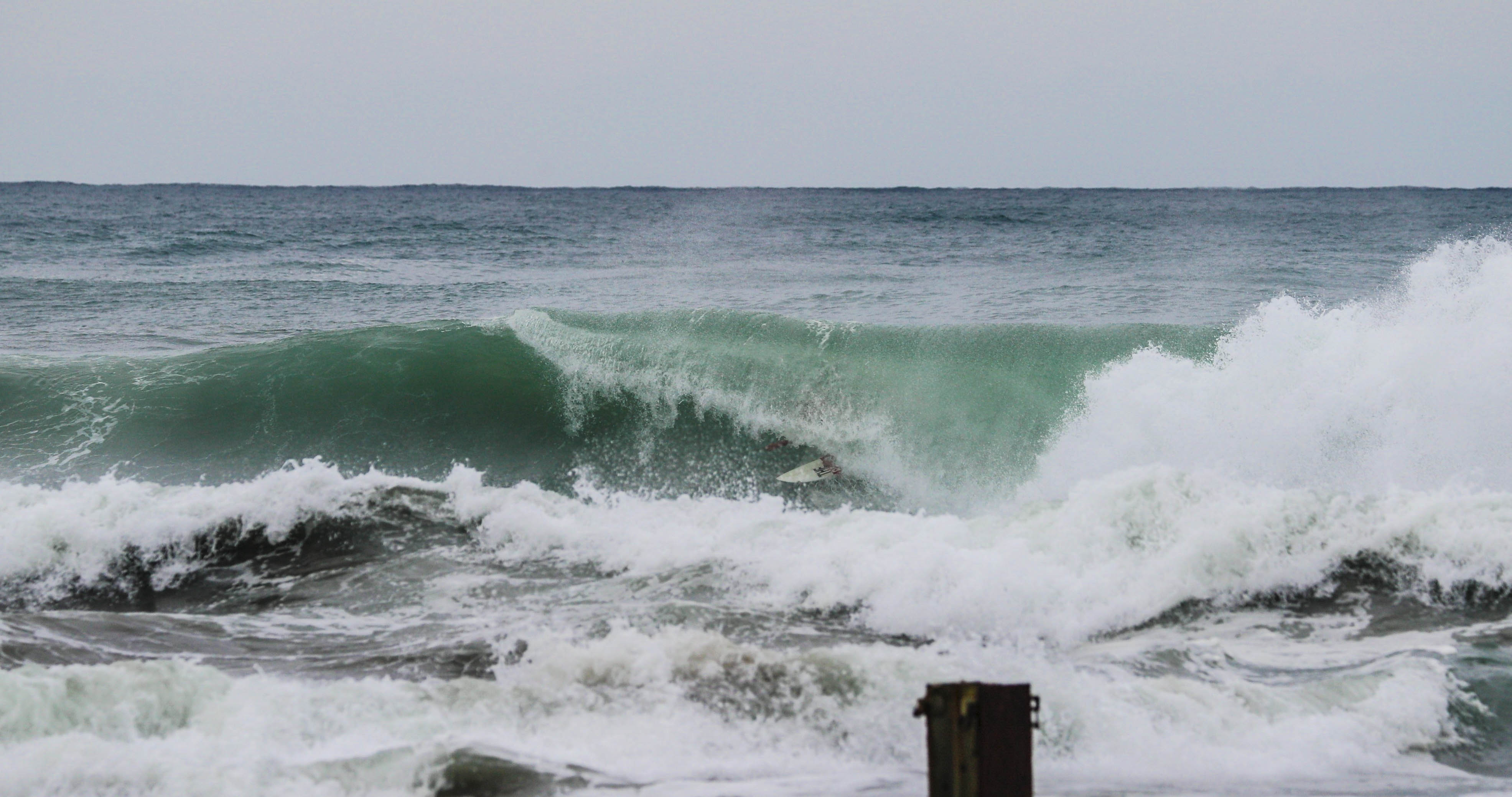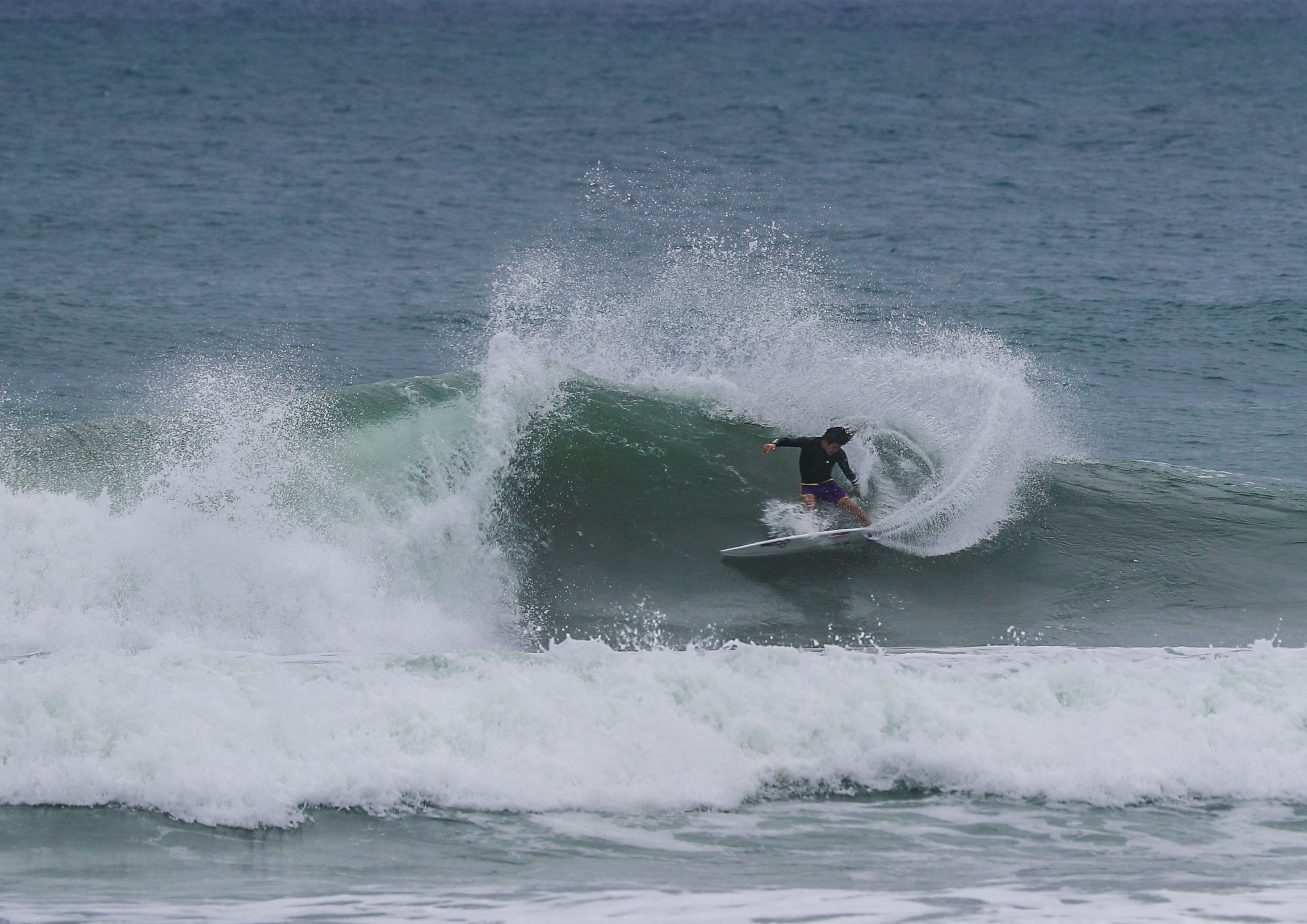 外洋に面した大海原、遠州灘のパワフルな波に育まれた彼にとっても、台風5号のこの日の波は非常にランダムでいい波を探し出すのが難儀であり、手強いものだったに違いない。