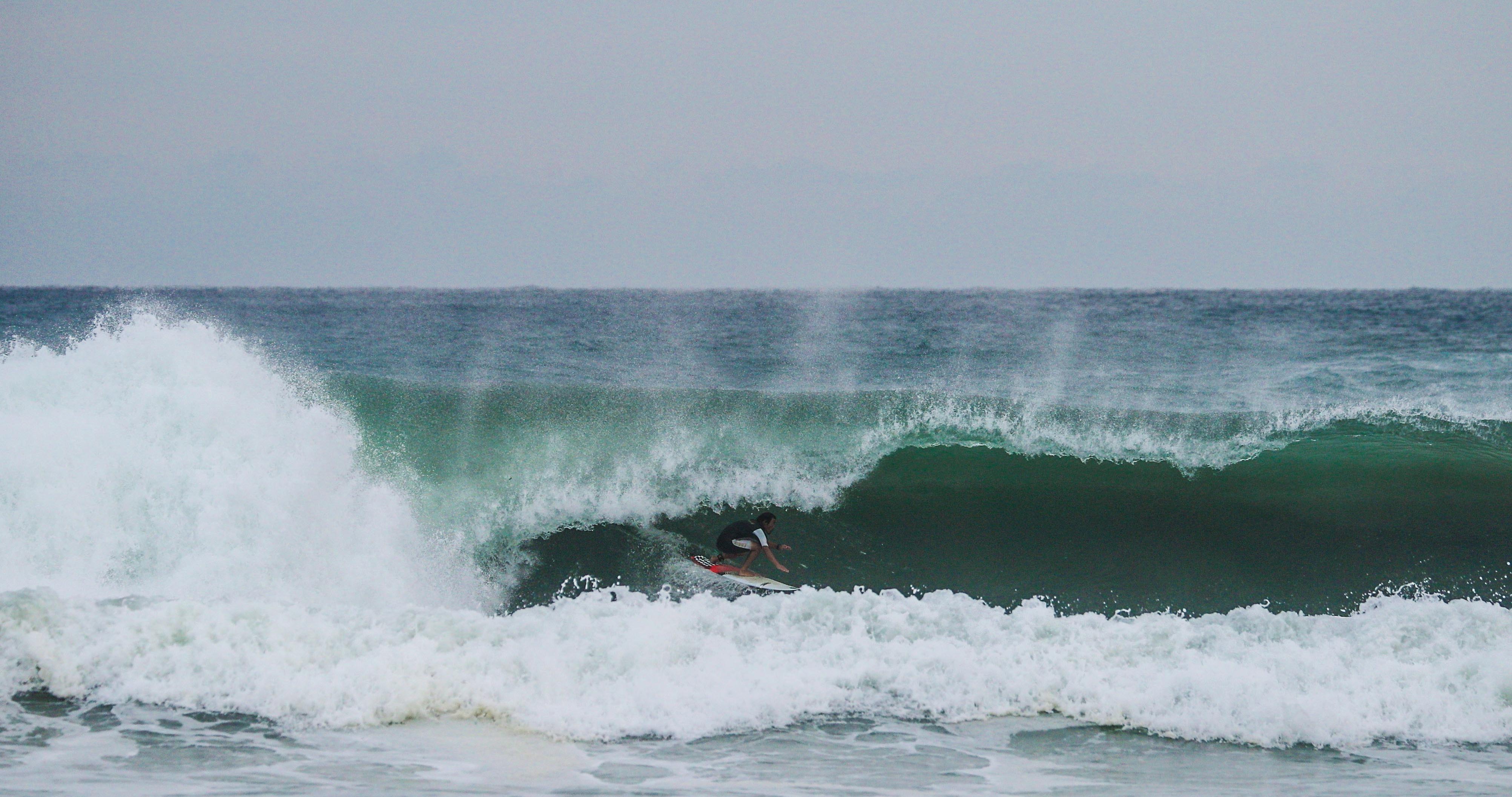 この日は波のコンディションに戸惑いながらも、その恐怖を見事克服する流石のメンタリティーと、アドレナリン全開の攻めっぷりを披露してくれた!