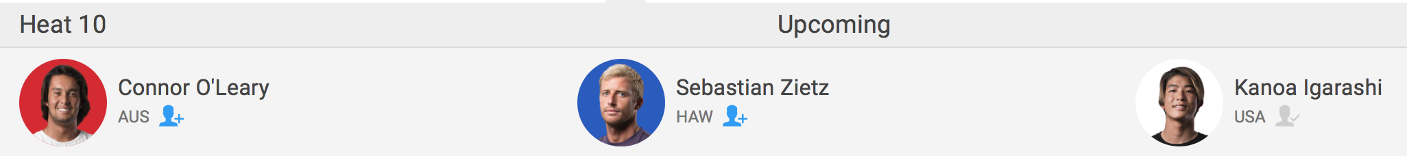 さらにカノア五十嵐とConnor O’Learyはラウンド1のヒート10でSebastian Zietzと対戦予定となっている。