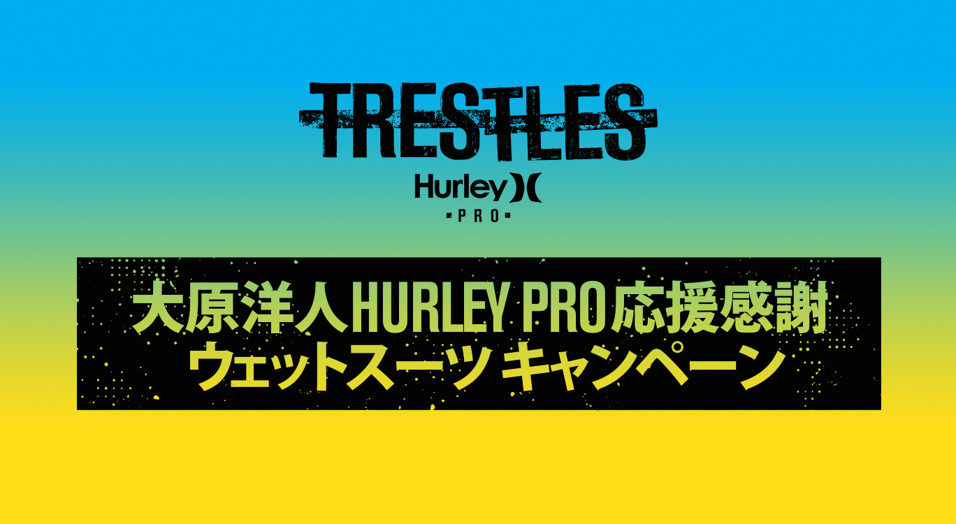 大原洋人はもちろん、ワールドチャンプJohn John Florenceをはじめ、Julian Wilson、Kolohe Andino、Filipe Toledo、Michel Bourezといった世界各国を代表するトッププロサーファー達のパフォーマンスを支える世界に誇る日本製HURLEY wetsuitsにHURLEYビーチタオルがもれなくもらえるこのビッグチャンスをお見逃しなく!!