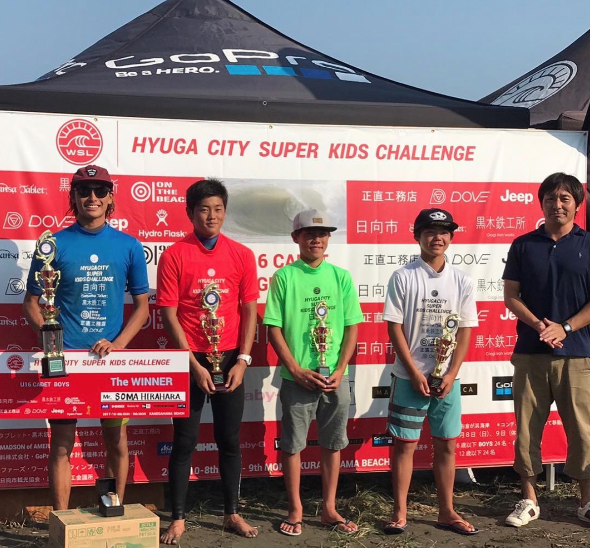 10/8(日)から10/9(月・祝)の2日間に渡り、宮崎県日向市金ヶ浜海岸を会場に16歳以下男子カデットと16歳以下女子ガールズに加え、12歳以下男子グロムを対象としたWSL Japan主催によるCD1000”Hyuga City Super Kids Challenge”が開催された。