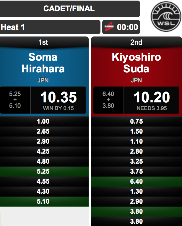 オーバーヘッドの十分なコンディションに恵まれた中、注目の16歳以下男子のカデットでは種子島出身の須田喬士郎を相手に、わずか0.15pt差でファイナルヒートを制した平原颯馬が優勝!!