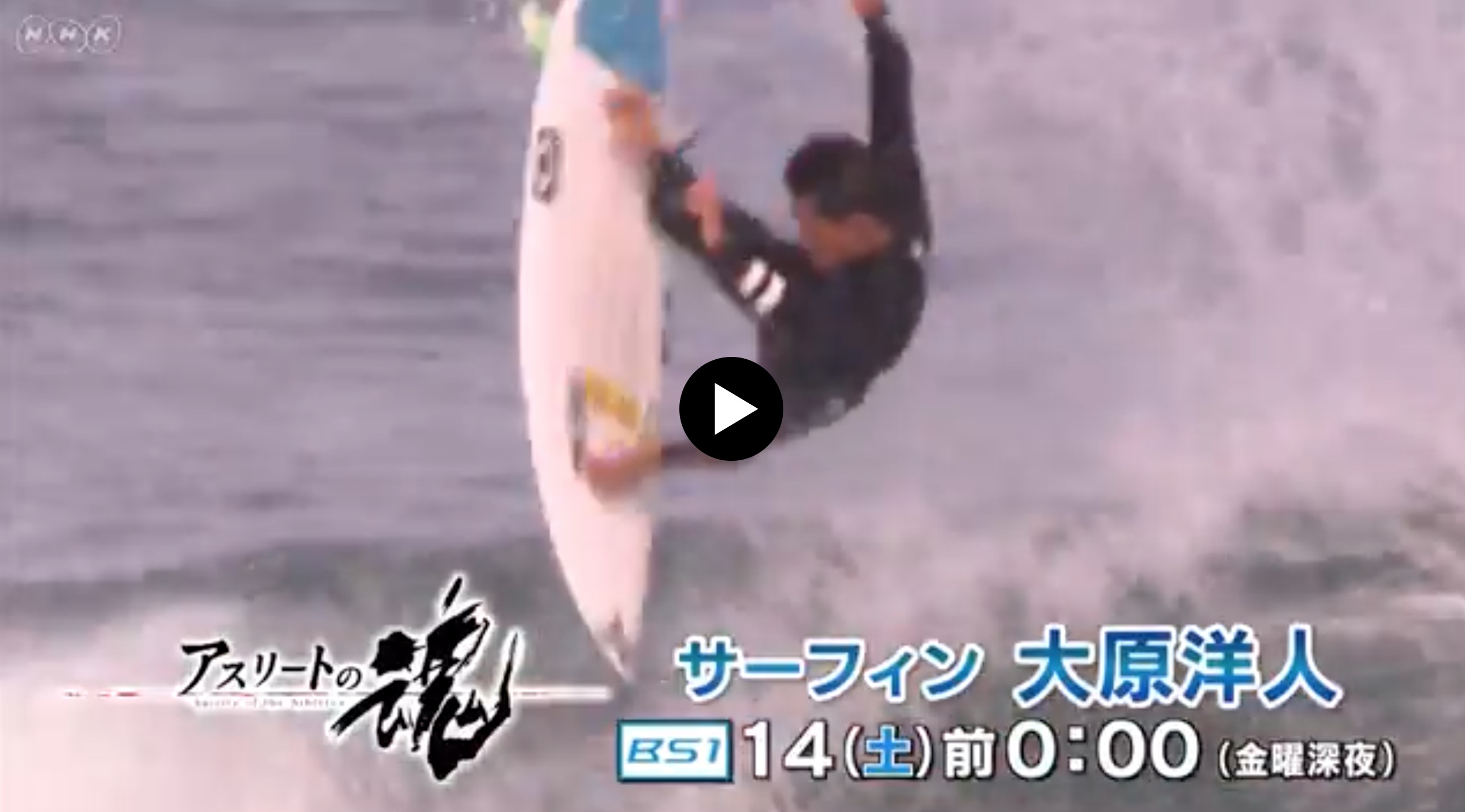 そんな彼に密着したドキュメンタリー番組”アスリートの魂「ふるさとの海から世界へ サーフィン・大原洋人」”が10/13(金)深夜、10/14(土)午前0:00からオンエアされることが決定!!
