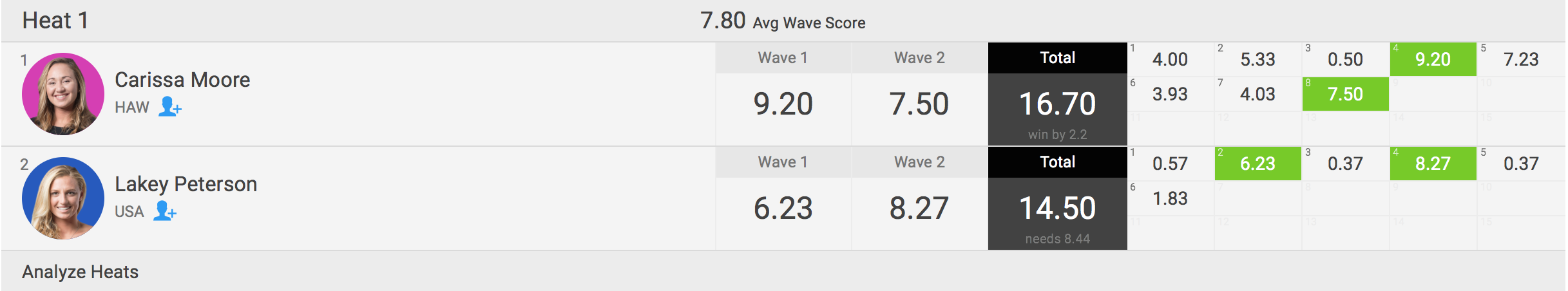 WOMENSファイナルは、セミファイナルのヒート2でワールドチャンプのTyler Wright(AUS)を下したLake Peterson(USA)とCarissa Moore(HW)の一騎打ちとなり、9.20ptのエクセレントライドと最後の最後のライディングでバックアップを7.50ptまで伸ばしたCarrisa Mooreが、Lakey Petersonの追従を許さないまま見事優勝を飾った!!