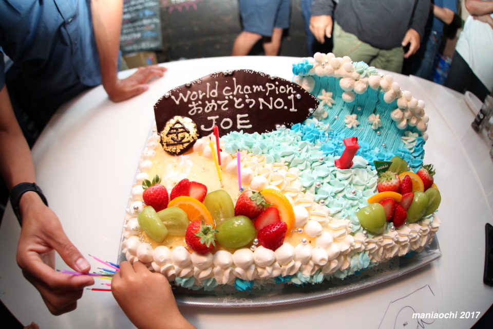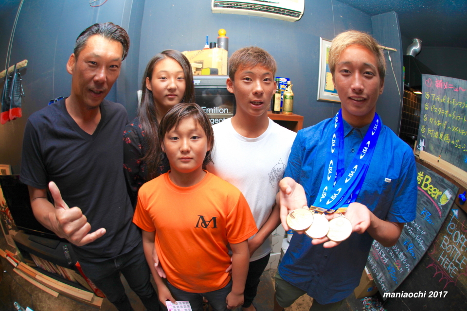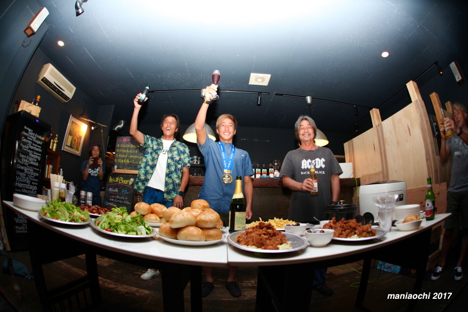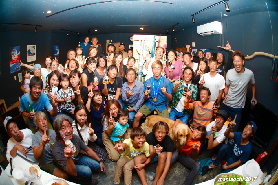 そしてその日本人初の快挙でもあるワールドチャンプに輝いた安室丈プロの祝勝会がホーム四国のあたたかい素晴らしい仲間ともいうべき多くのホームファミリーに囲まれて祝福され四国は宍喰にあるCafe&Bar Bowlsにてアットホームなスタイルで行われた。
