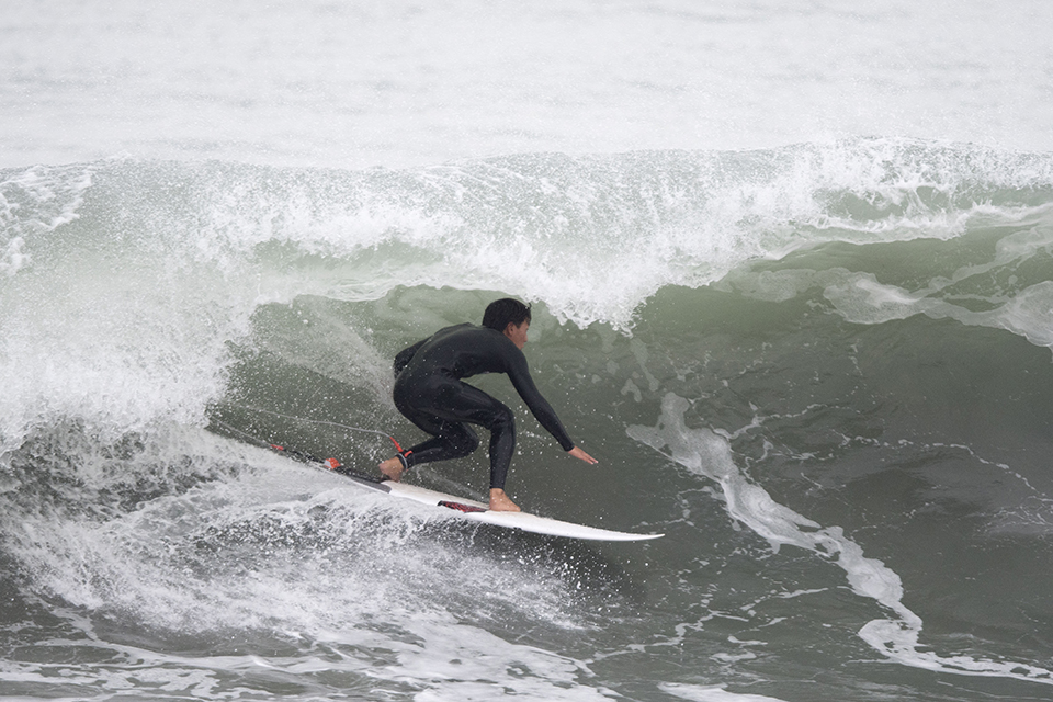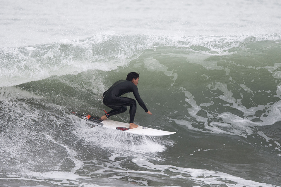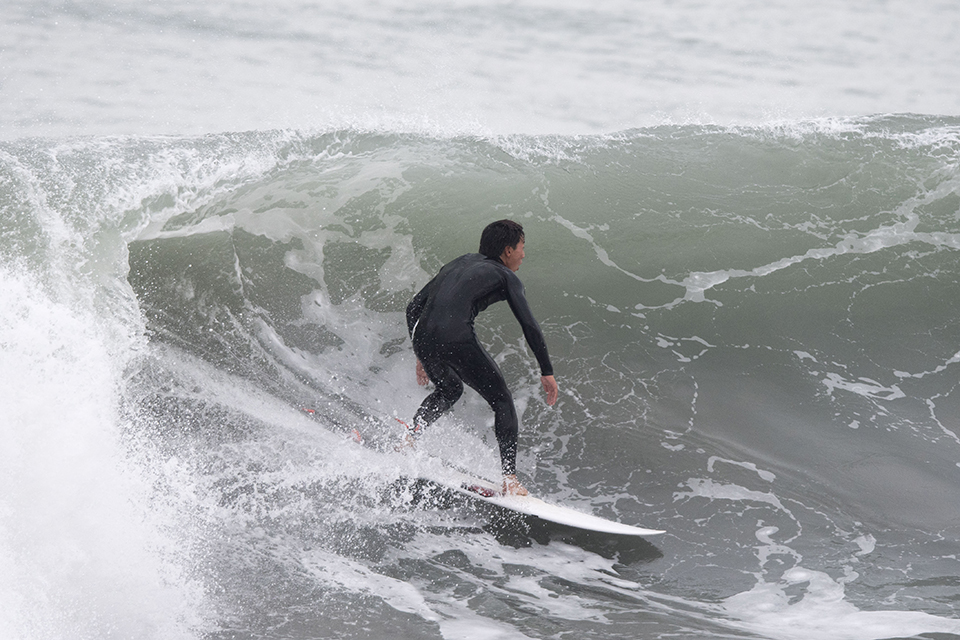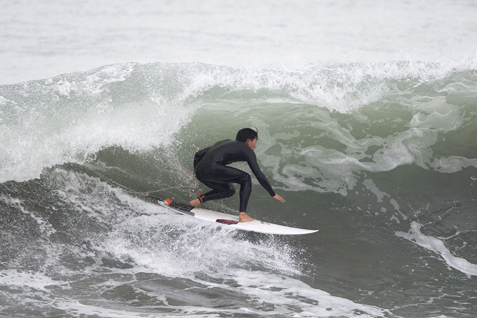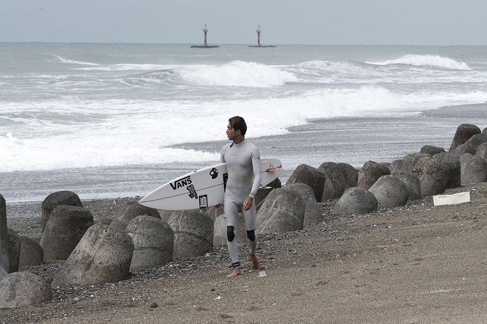 この日は東京の築地で商談があったことから寝ずに往復600kmをこなしてこのセッションに参加してくれたプロサーファー樋口賢。サーフィンに対する姿勢、チューブスキルの高さとしらすの株式会社ヤマト代表取締役でありながらも、そのプロフェッショナルとしての意識の高さには脱帽であります。Ken Higuchi.