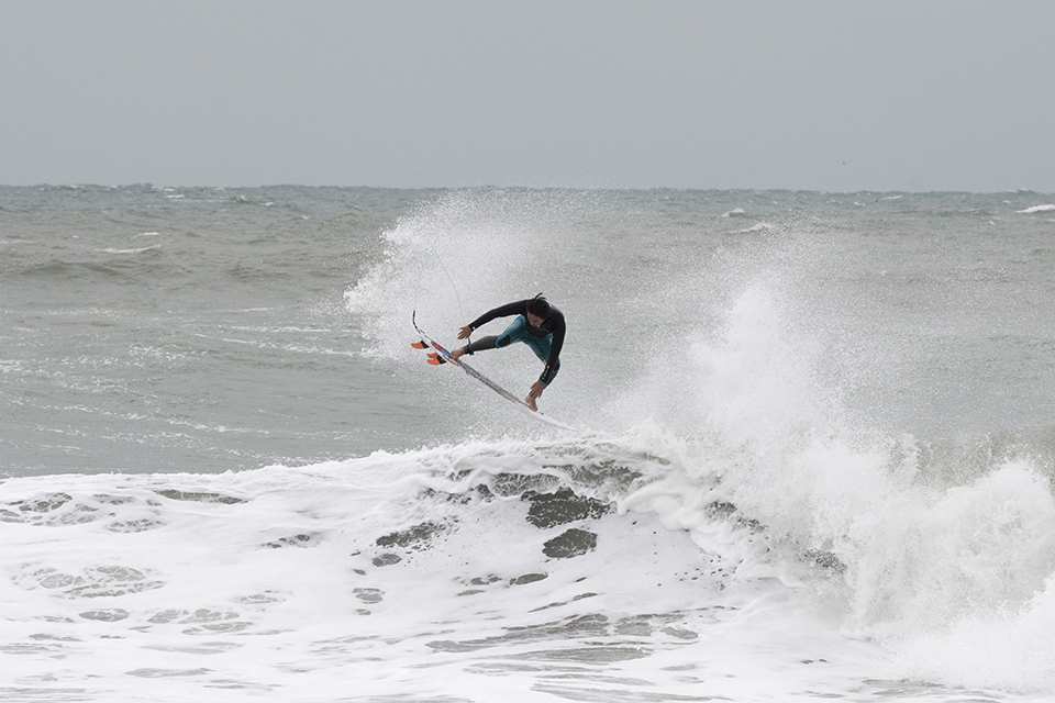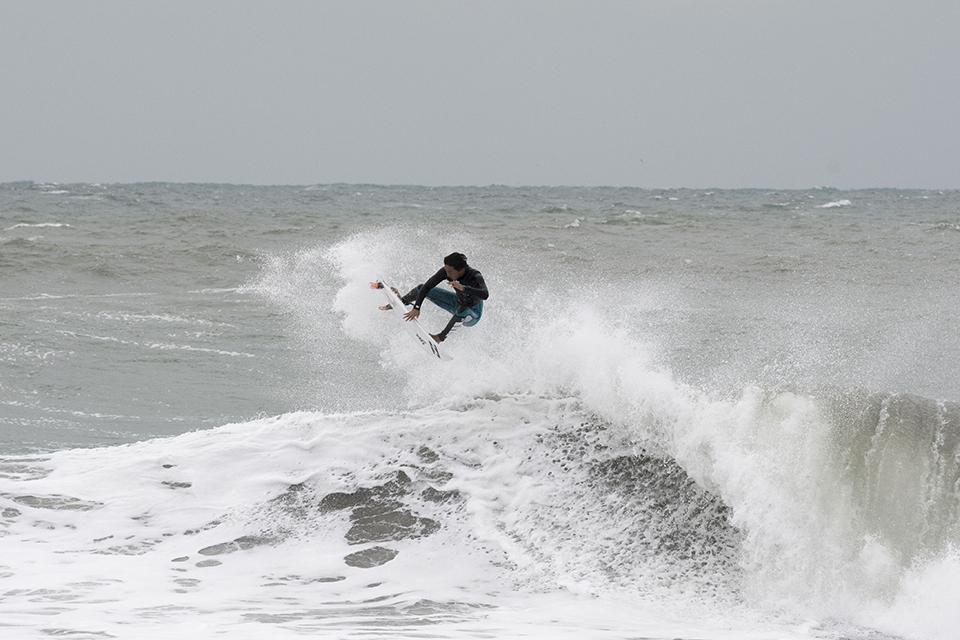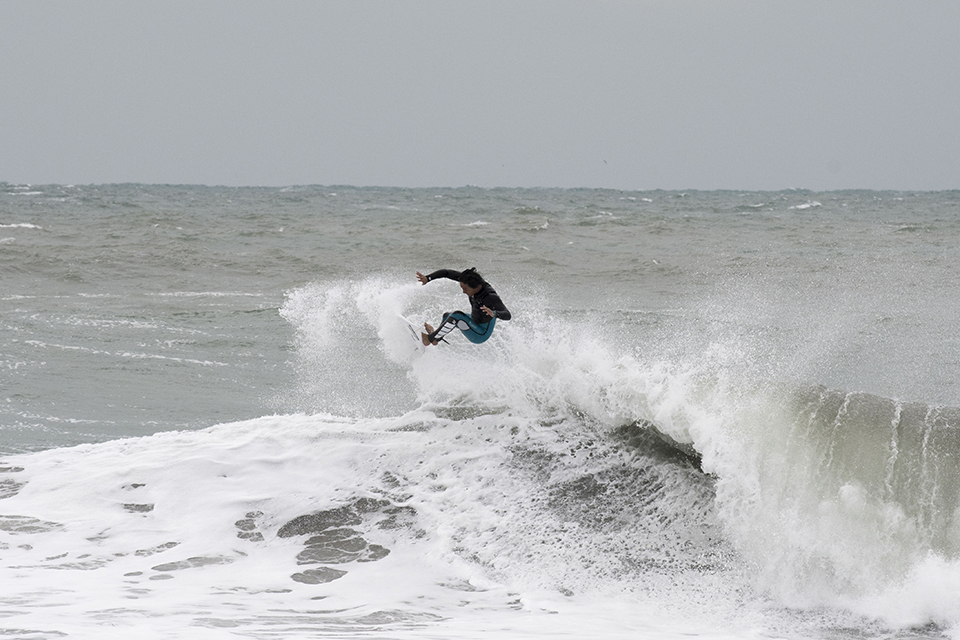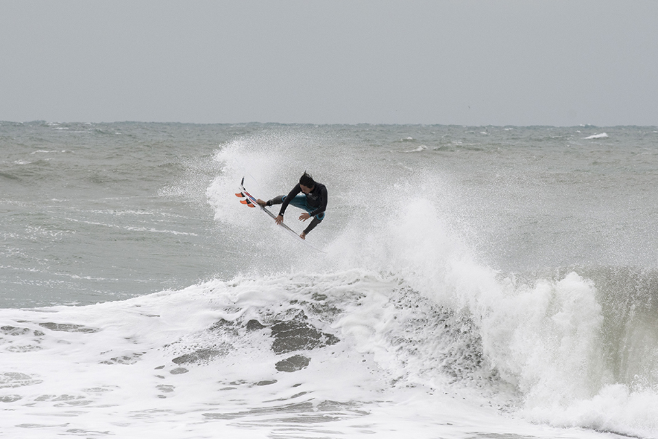 オフショアを味方につけ、滞空時間の長いエアリバースを披露する仲村拓久未。いつも陽気なその性格で一緒にいると笑いが耐えない最高なムードメイカー。Takumi Nakamura.