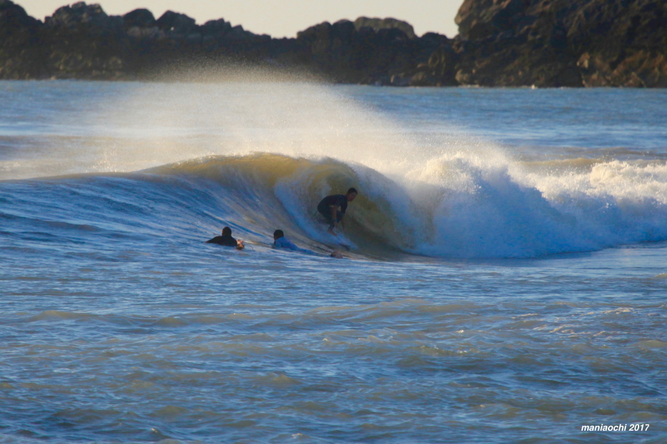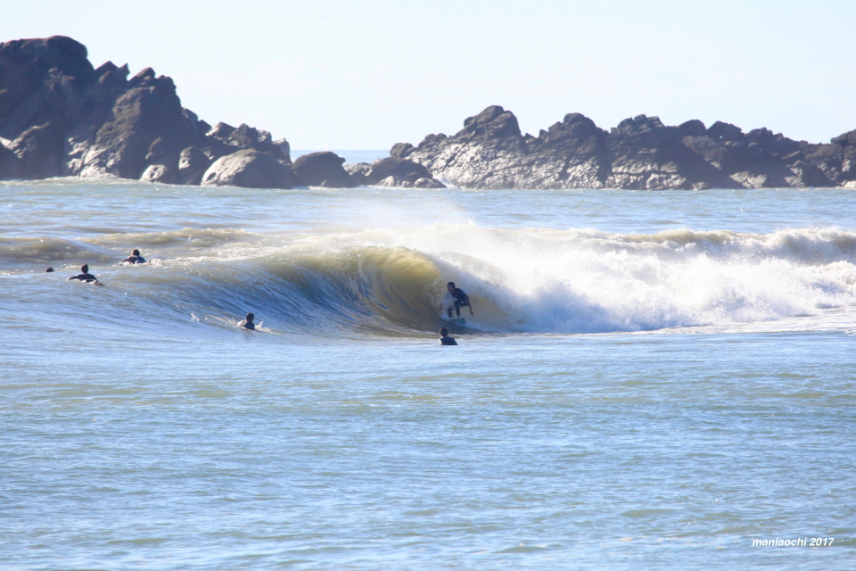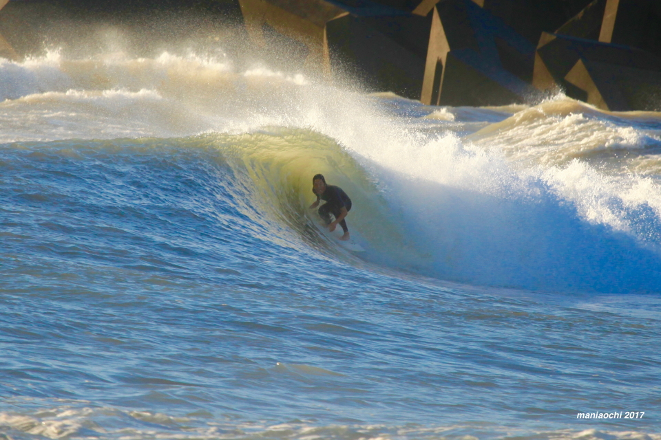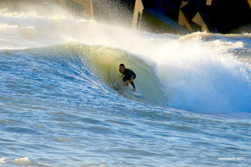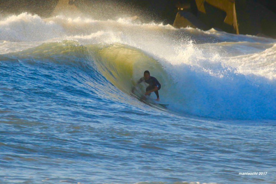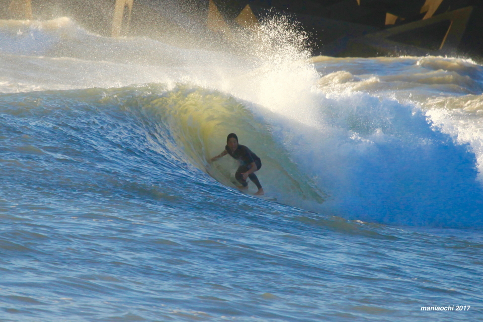 おまけに比較的インサイド気味に掘れ上がるブレイクの為、下手すればボードにダメージを食らうというリスクの中、流れに負けて潰されるセットが多い状況ではあったが時折入るコンディヨンの良いセットを求めセッションが繰り広げられていた。