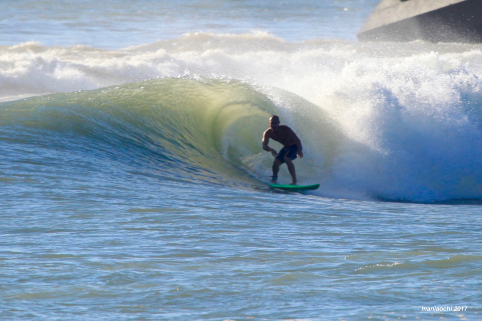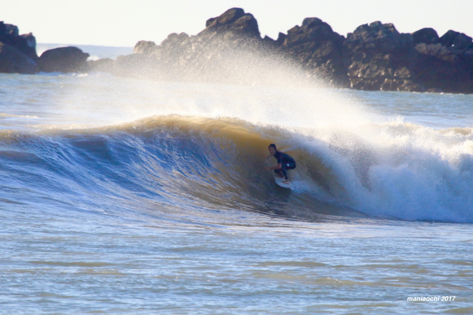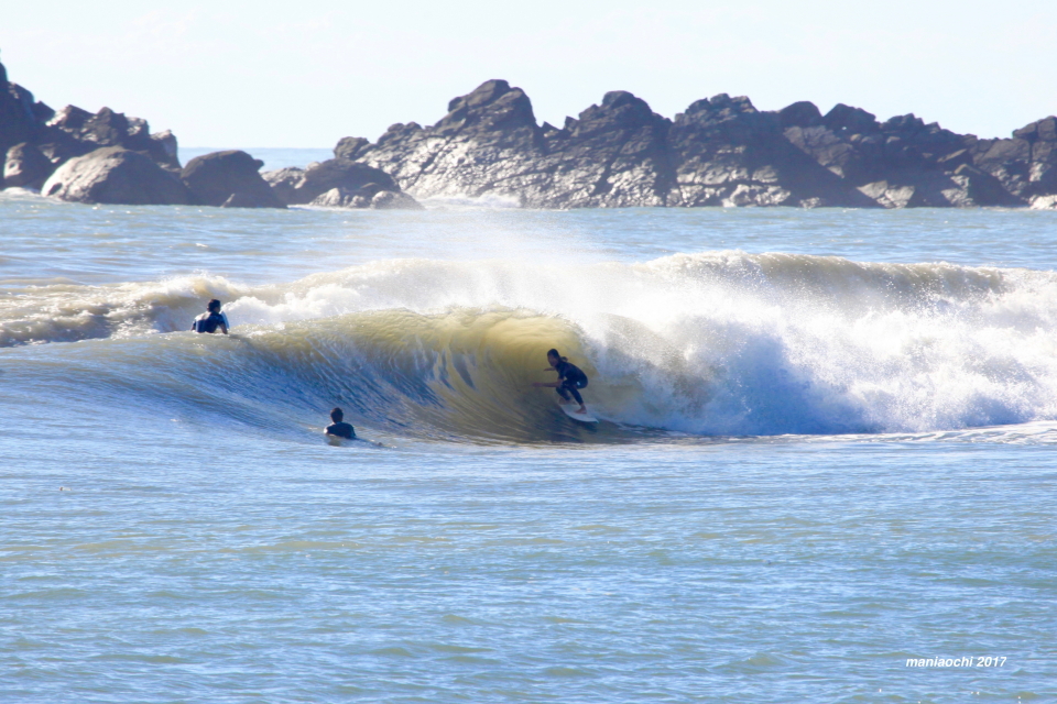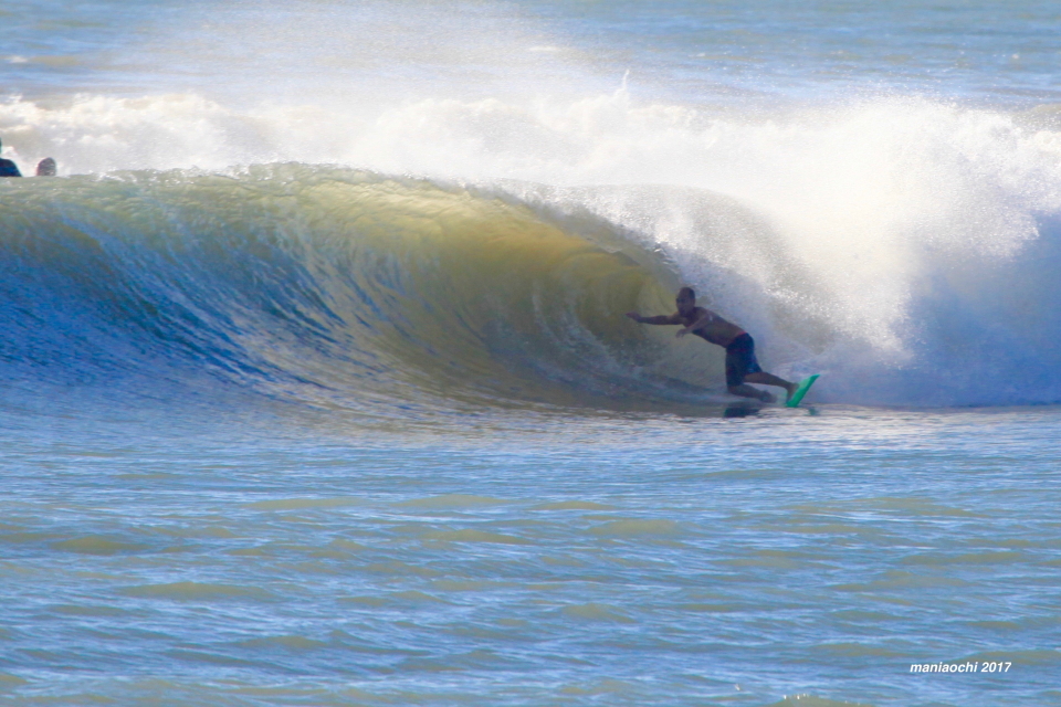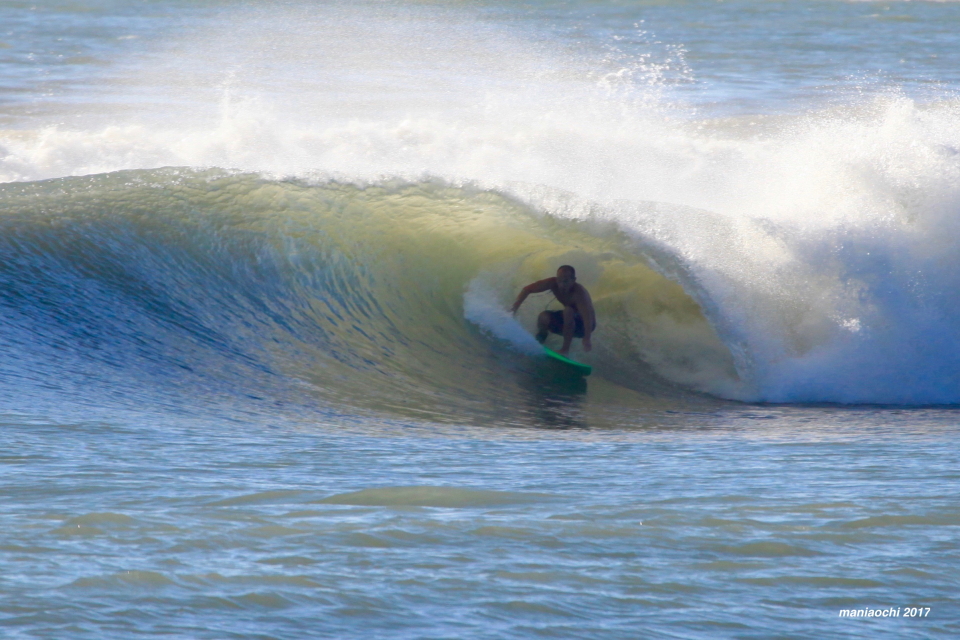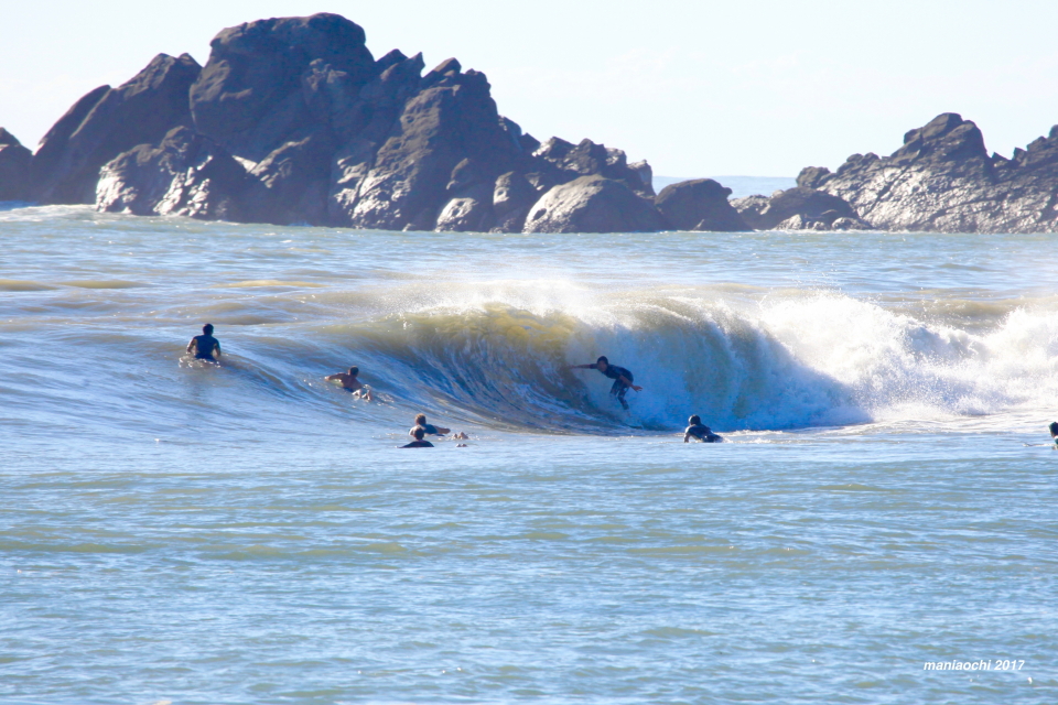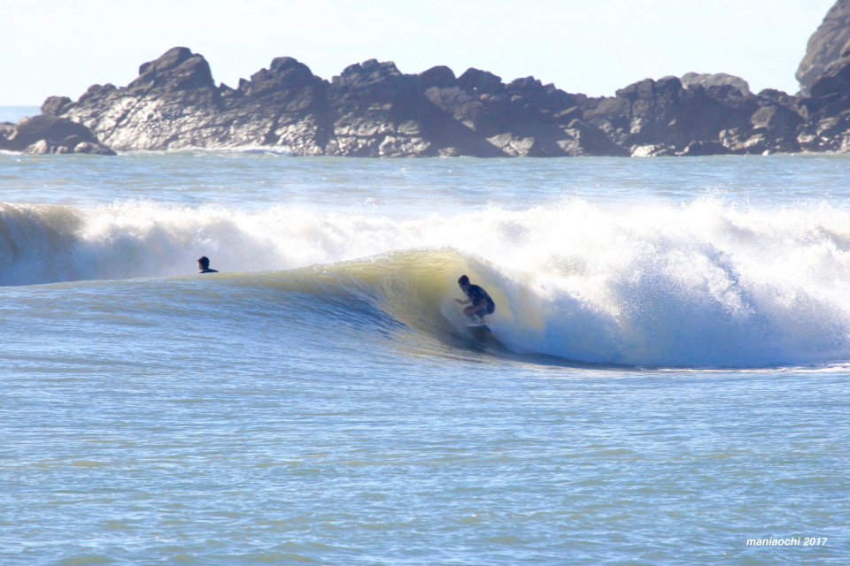 おまけに比較的インサイド気味に掘れ上がるブレイクの為、下手すればボードにダメージを食らうというリスクの中、流れに負けて潰されるセットが多い状況ではあったが時折入るコンディヨンの良いセットを求めセッションが繰り広げられていた。