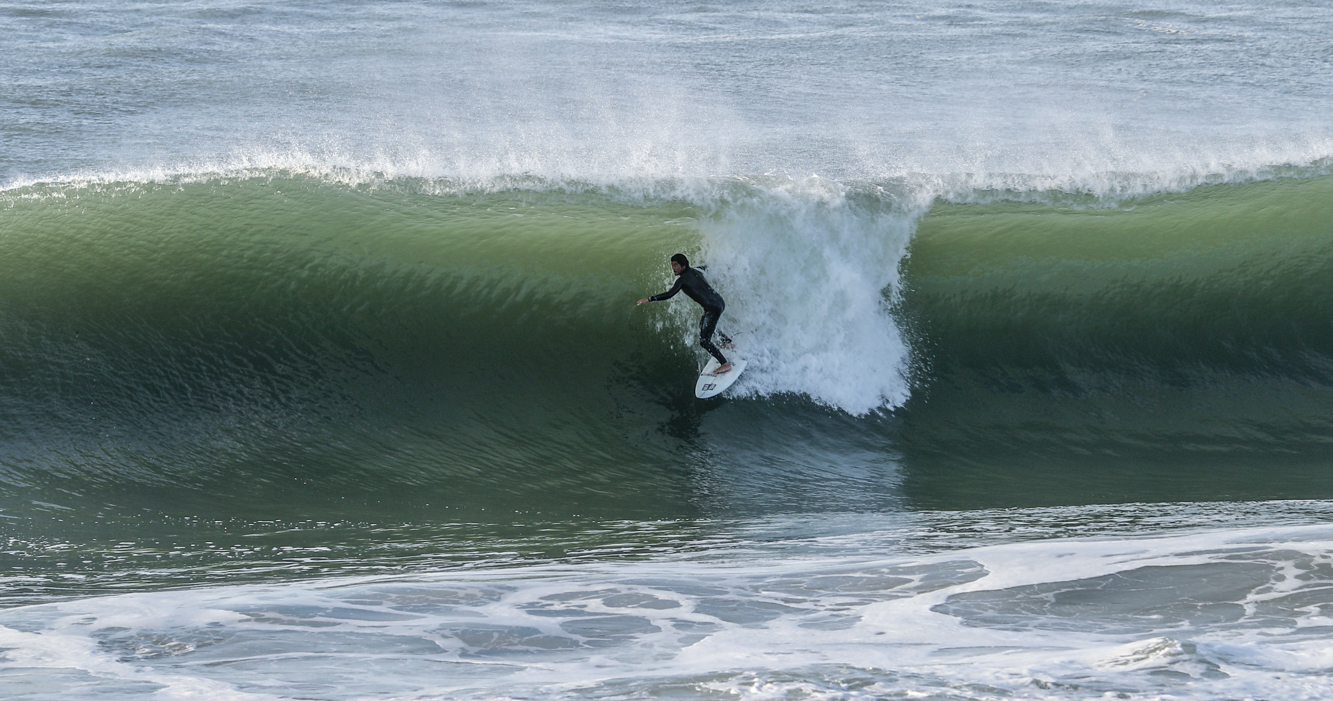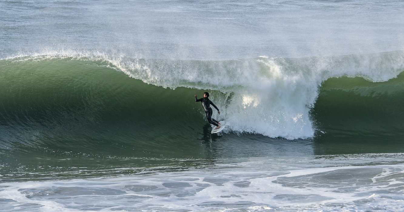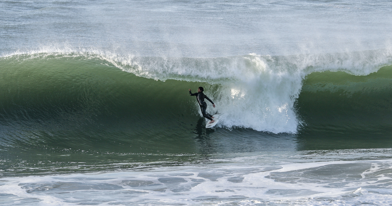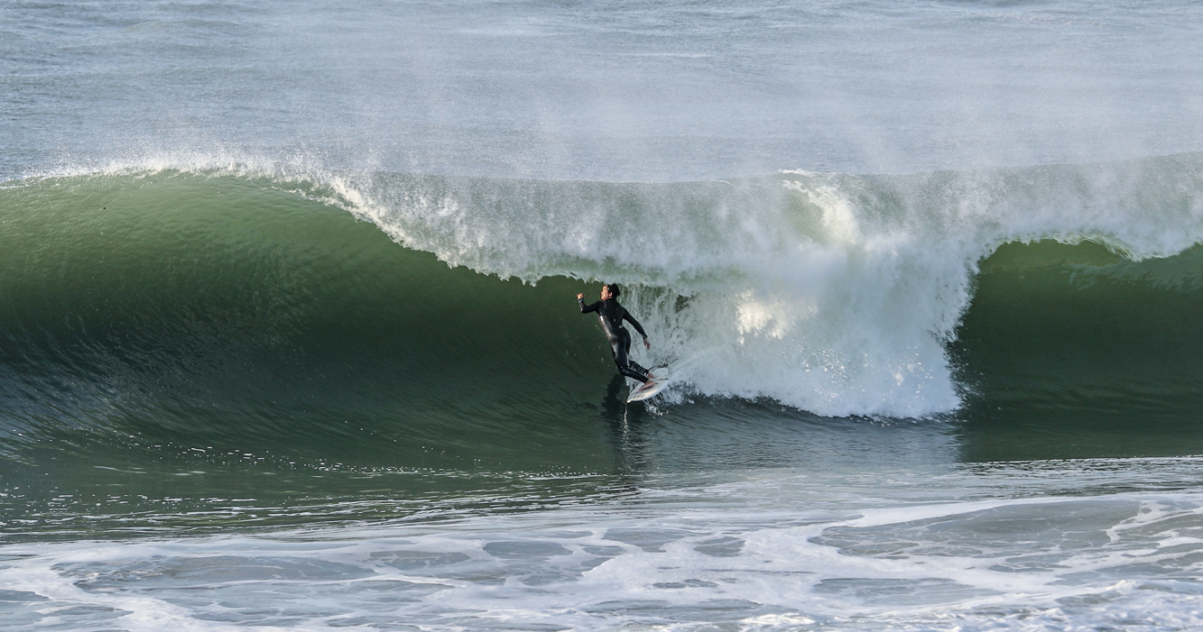 西高東低の気圧配置により、かなりワイルドなチューブコンディションとなった【西高東低愛好会】冬の日本海ロードトリップ vol.1 THE DAYより、この日のベストシークエンスとなった松岡慧斗によるフロントサイドの超ギリギリな紙一重なねじ込みからのスピッツアウト・チューブのシークエンスをお届け!!