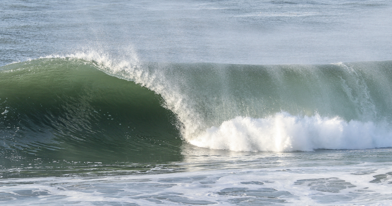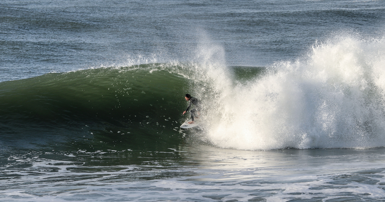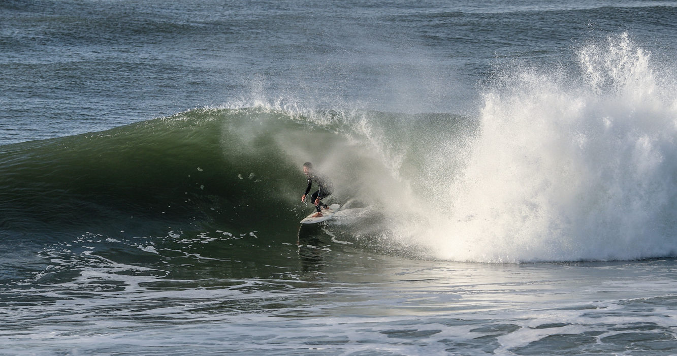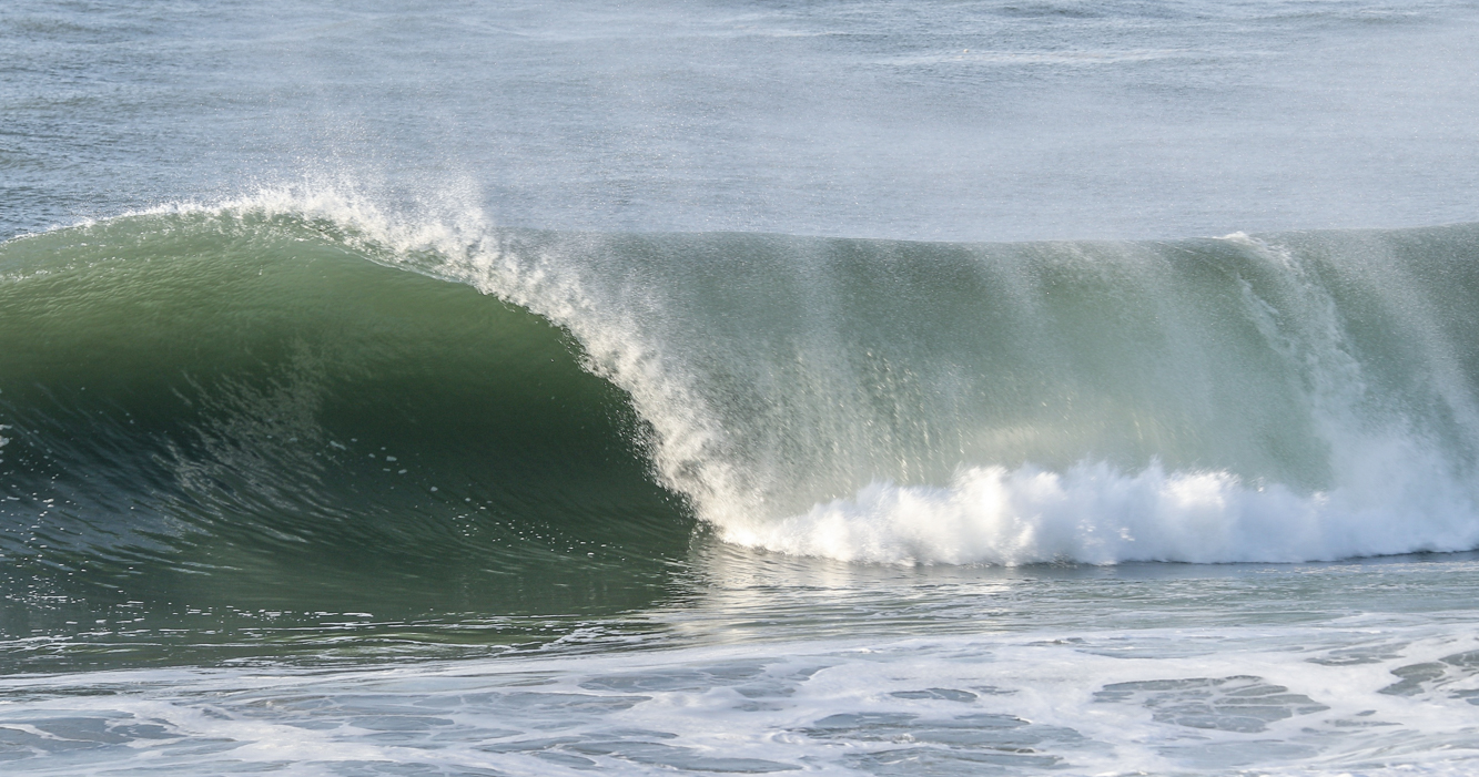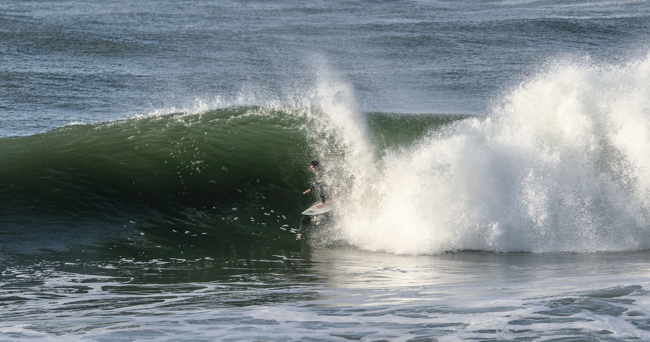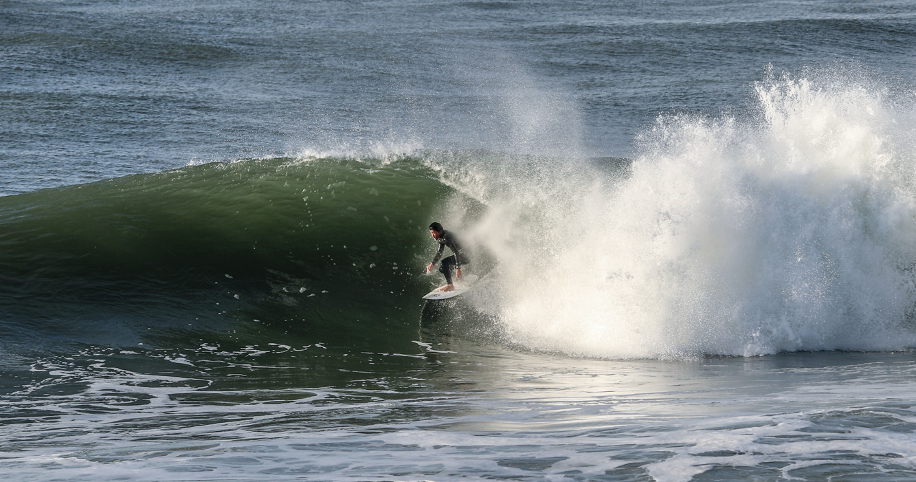 テイクオフした瞬間から波に張り付くも、不規則なバックウォッシュを伴った急激な巻き上げにより一度ボトム側に吐き出されそうになりながらも、まさに紙一重のタイミングでリップをかわしながらチューブの中に身を潜め、まさかのディープチューブからのスピッツアウト。