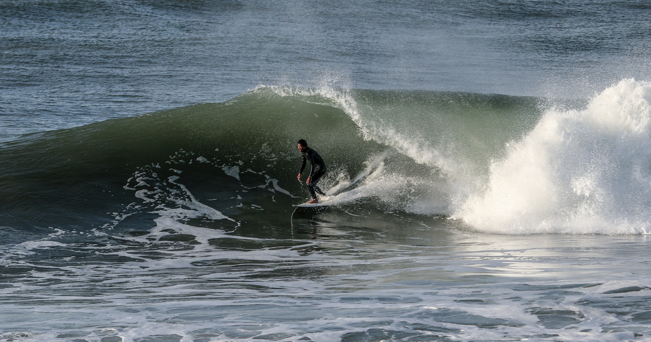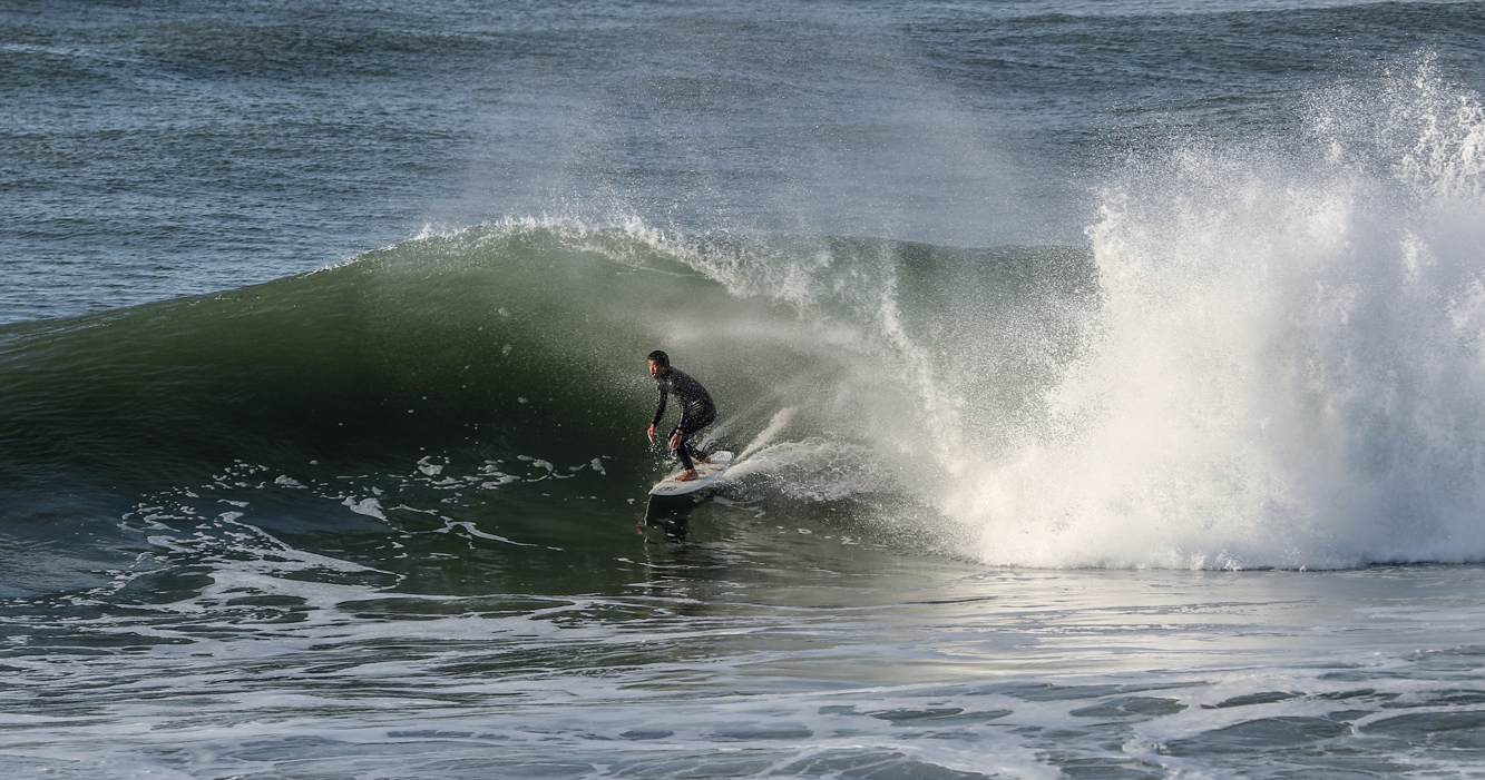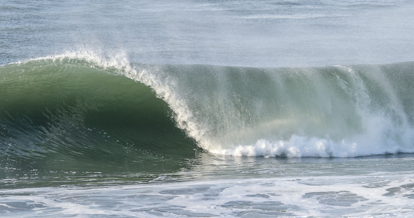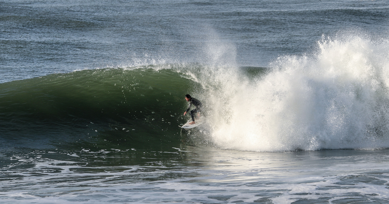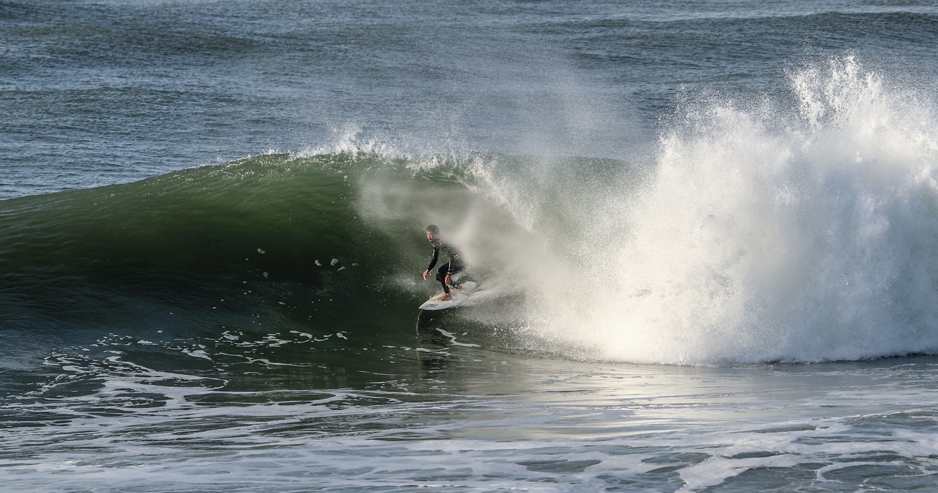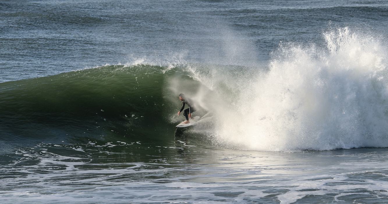 テイクオフした瞬間から波に張り付くも、不規則なバックウォッシュを伴った急激な巻き上げにより一度ボトム側に吐き出されそうになりながらも、まさに紙一重のタイミングでリップをかわしながらチューブの中に身を潜め、まさかのディープチューブからのスピッツアウト。