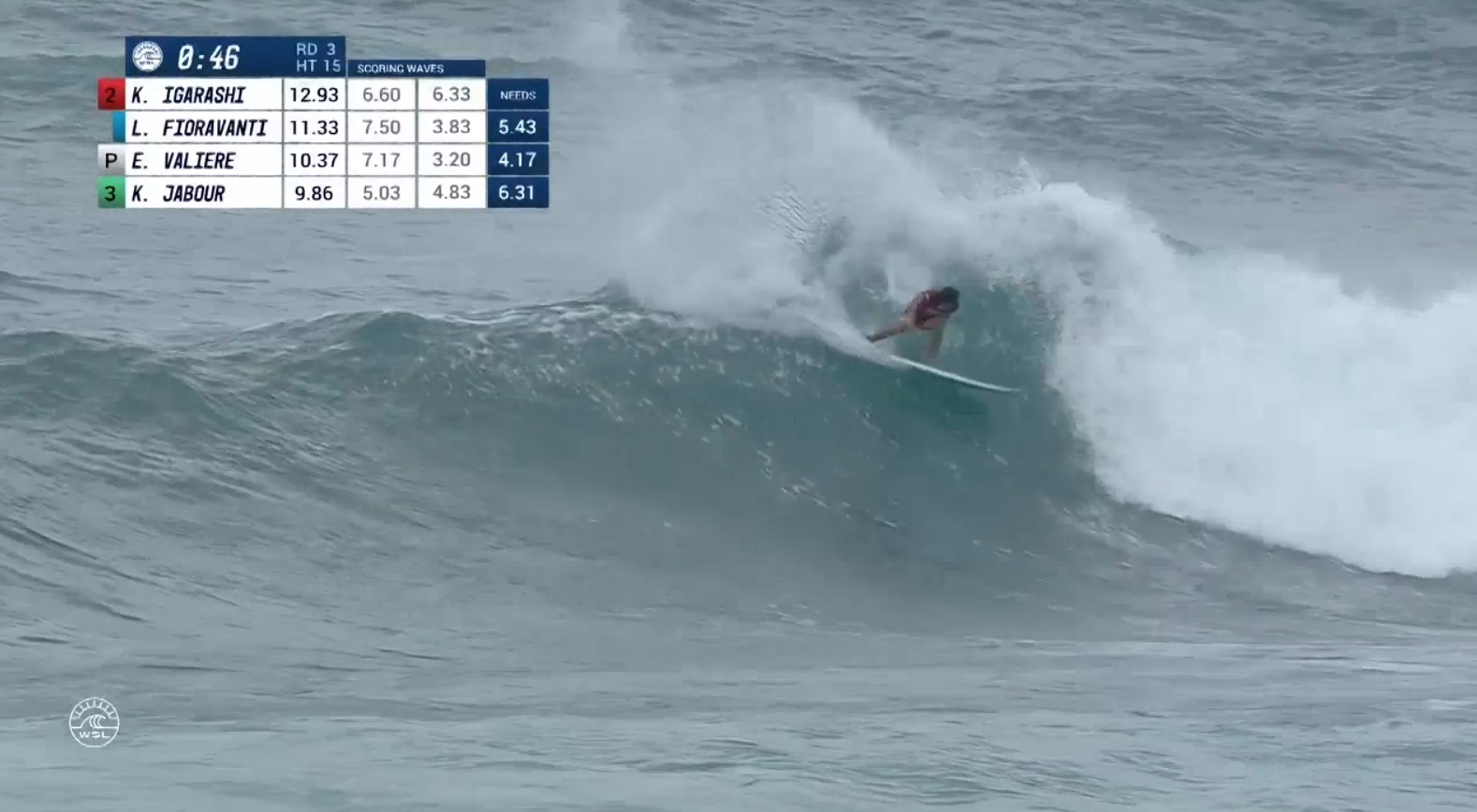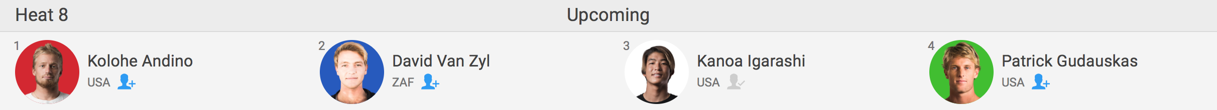 迎えるラウンド4のヒート8ではKolohe Andino(USA)、David Van Zyl(ZAF)、Patrick Gudauskas(USA)と対戦予定。