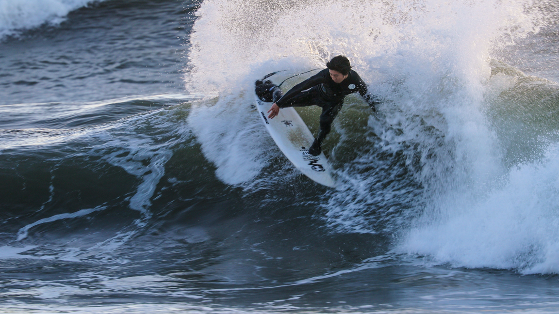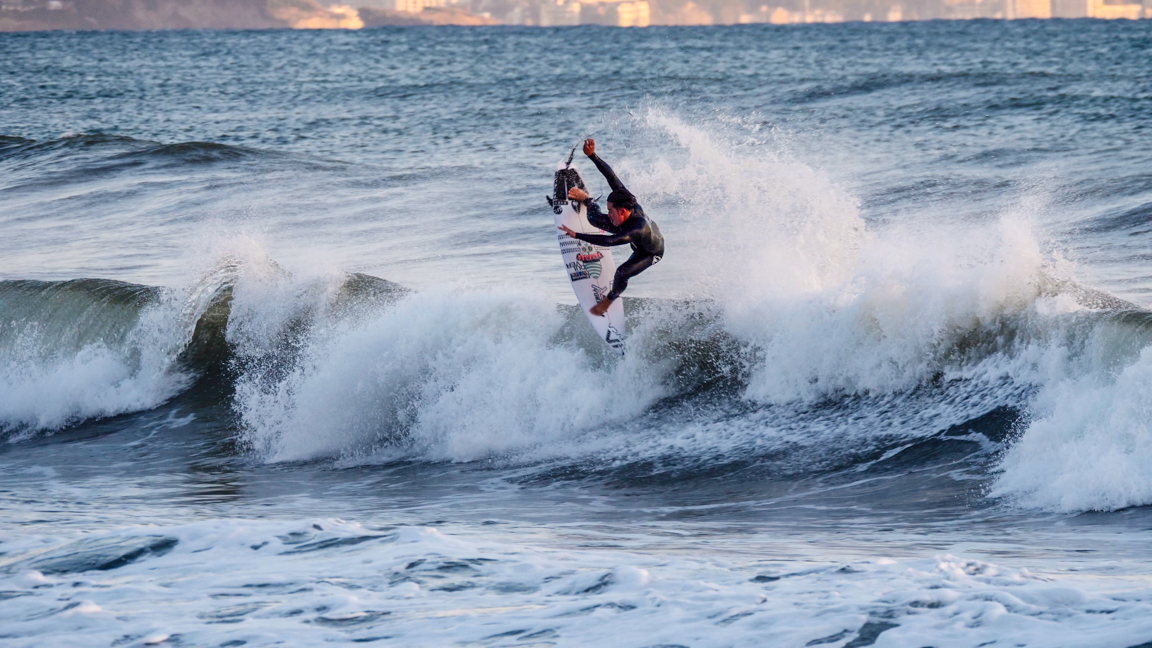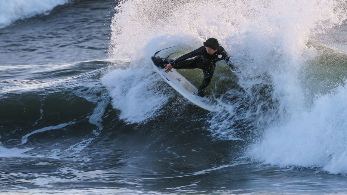 幼い頃からスケートボーダー&サーファーとして培ってきたクロスオーバーな横乗り感覚を武器に、高次元でサーフィンとスケートボードを融合させたそのオリジナルスタイルをこの日も発揮しまくっていた。